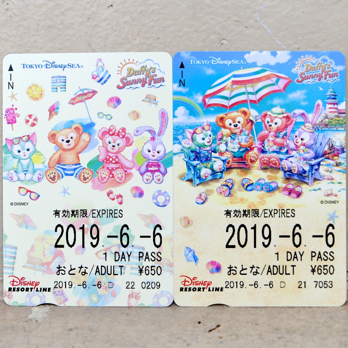 パラソルの下でデザートを楽しんでいるダッフィーたちがデザインされた2種類のフリーきっぷが発売されています☆