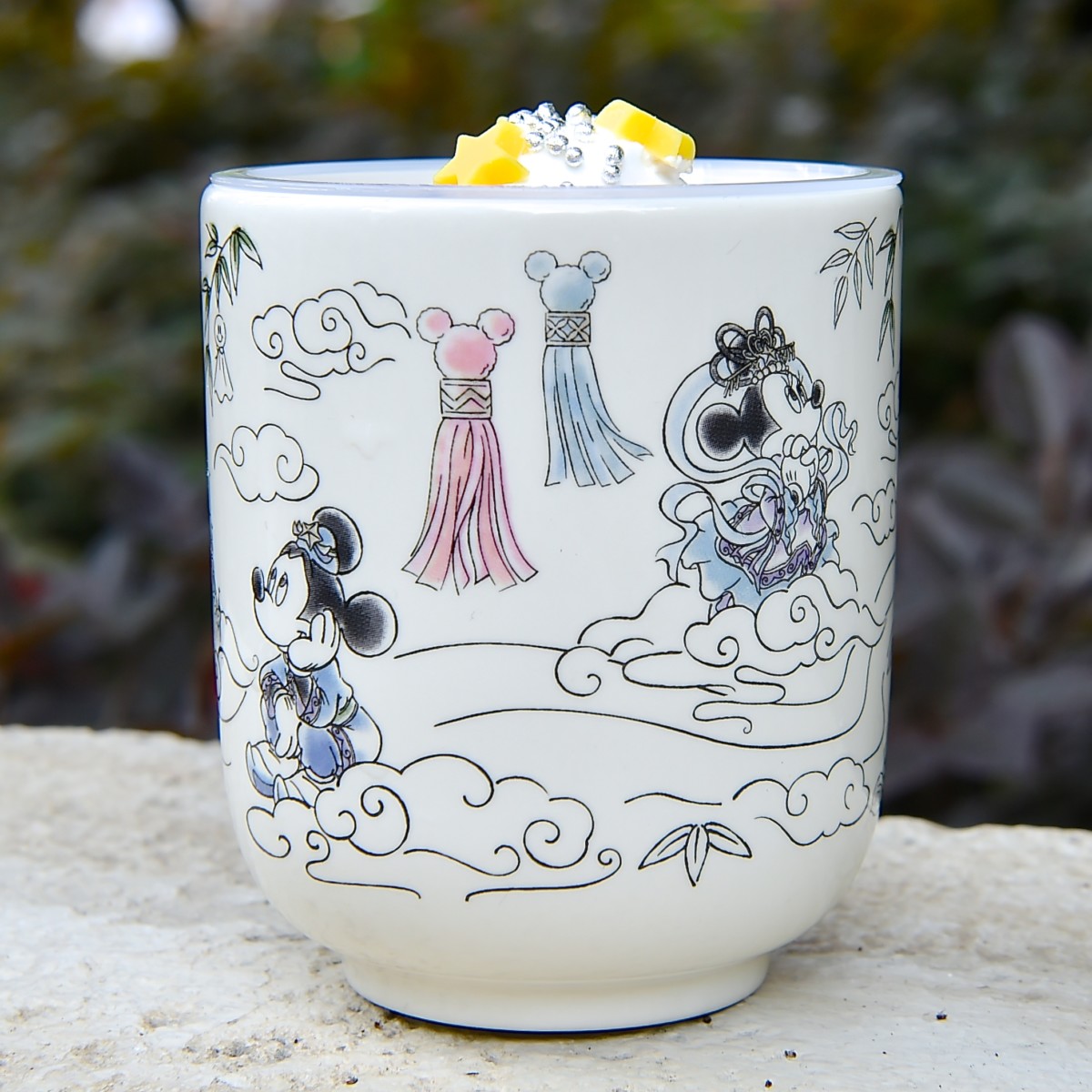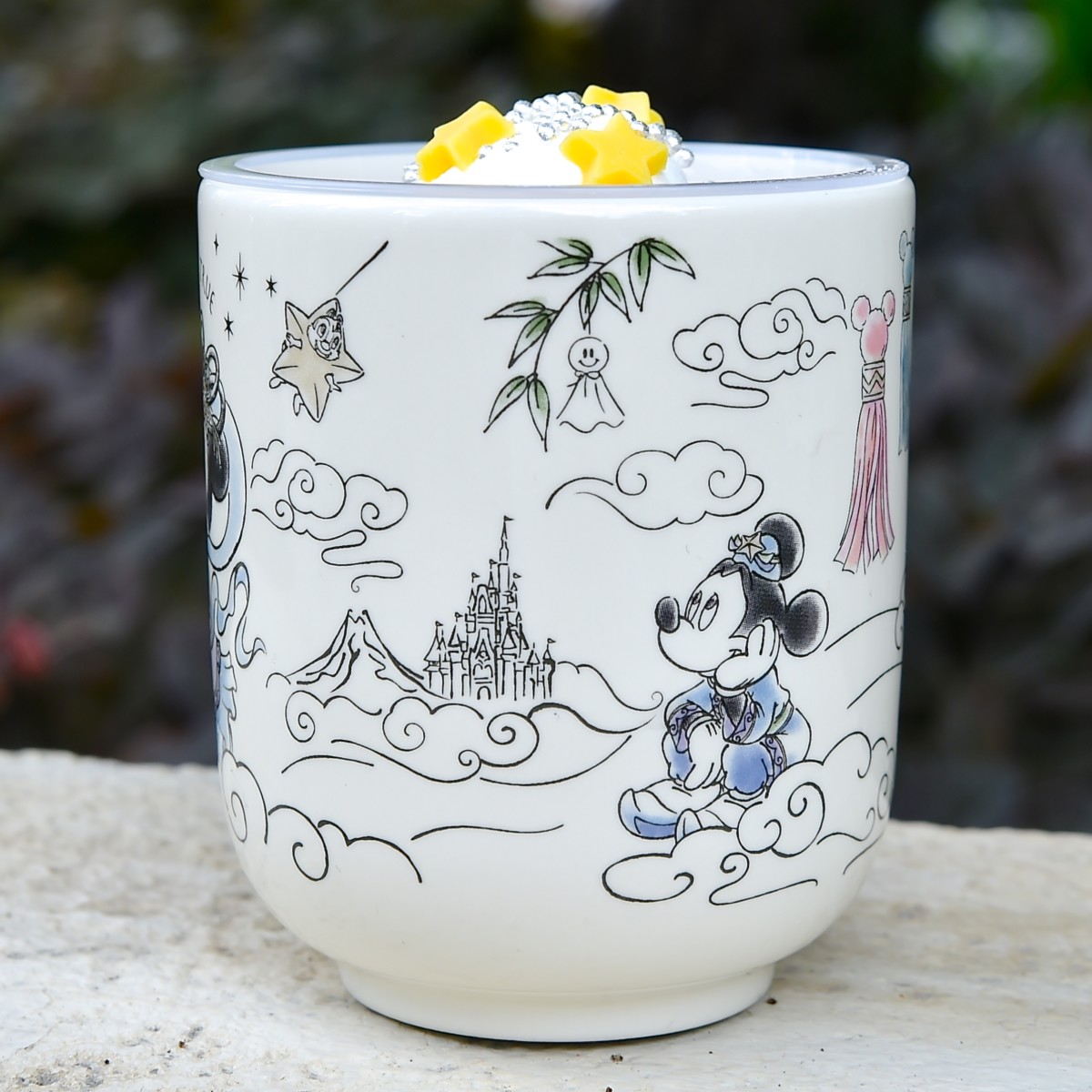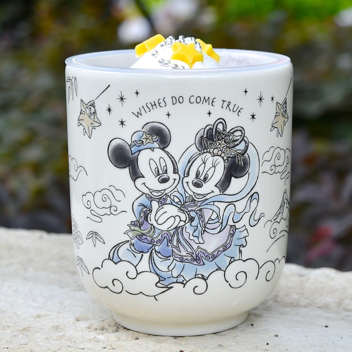 七夕の夜、会うことができた彦星ミッキーと織姫ミニーちゃんがデザインされたおしゃれな色使いが魅力のスーベニアカップ。