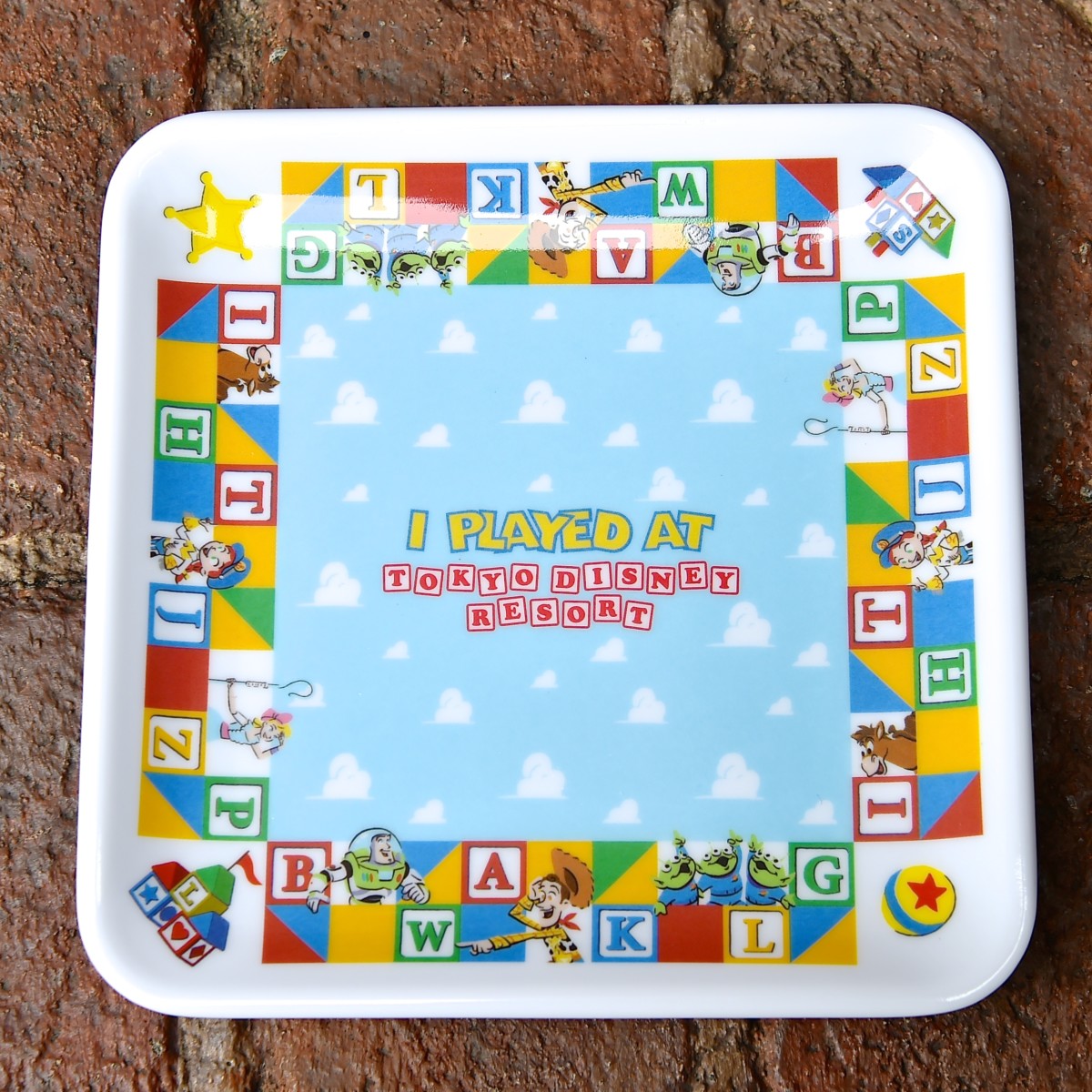 東京ディズニーリゾートで遊んでいる『トイ・ストーリー』の仲間たちがデザインされたスーベニアプレート。