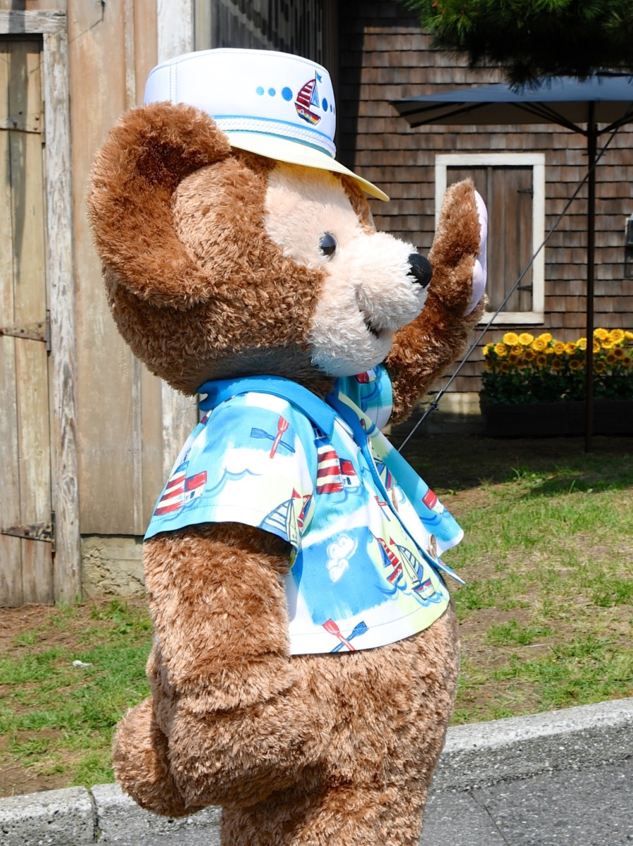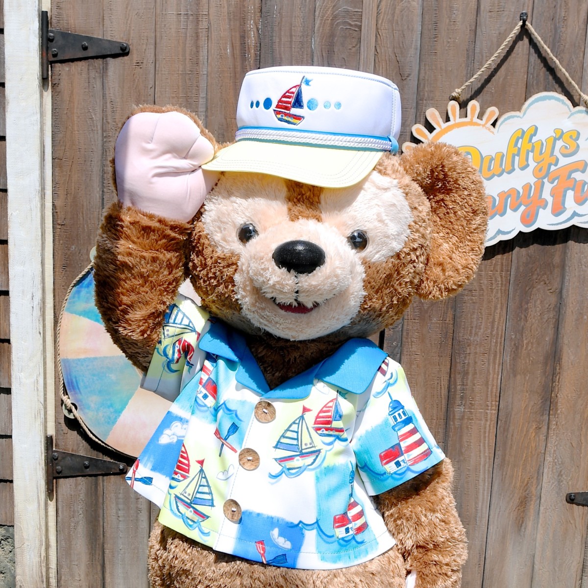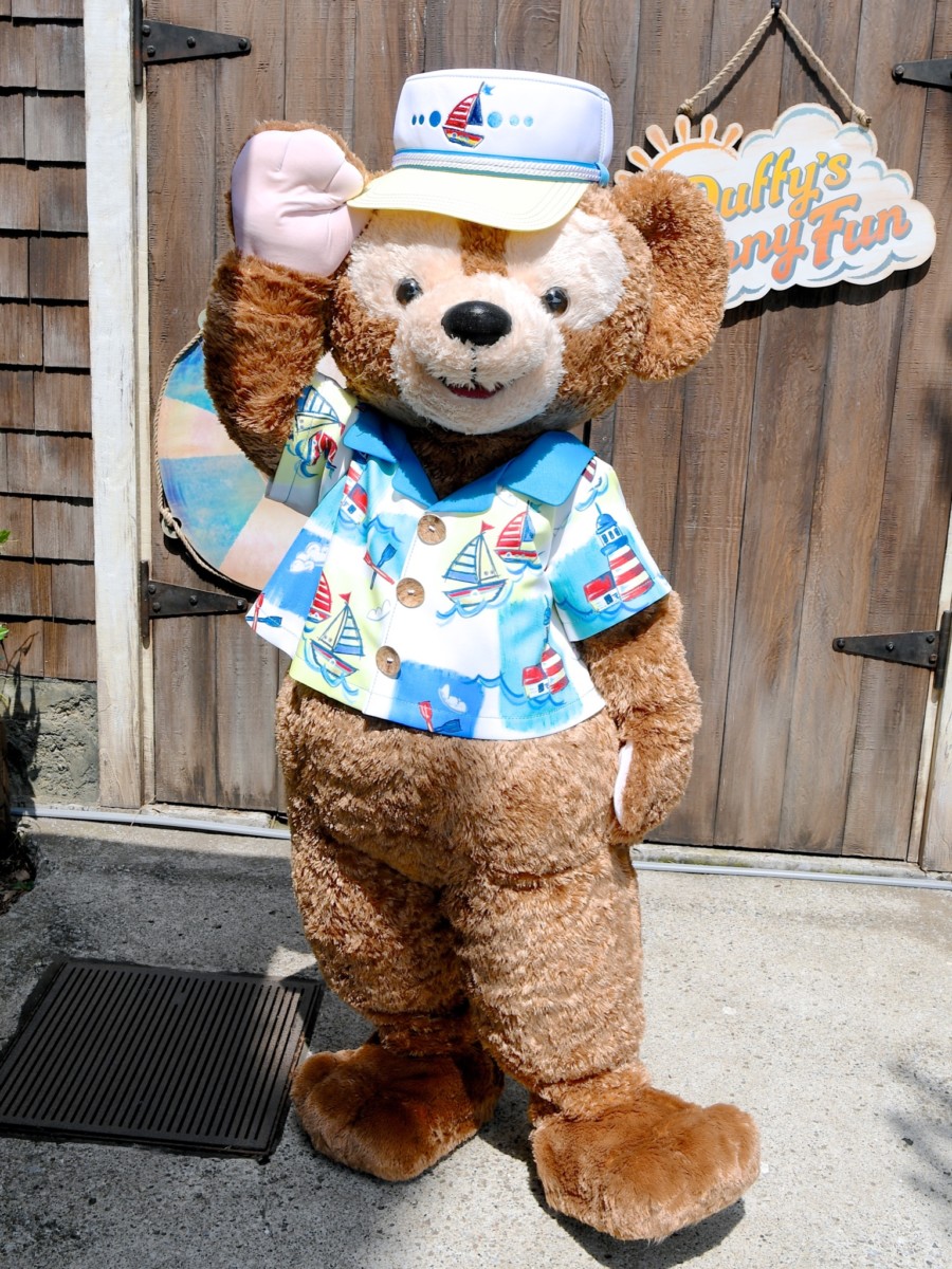 灯台やヨットがデザインされた夏らしく涼しげなシャツを着た「ダッフィー」と会うことができます☆
