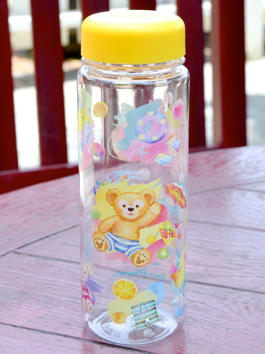 夏を満喫しているダッフィー&フレンズとダッフィーたちらしいかわいいアイテムがたくさんデザインされたクリアなドリンクボトル。