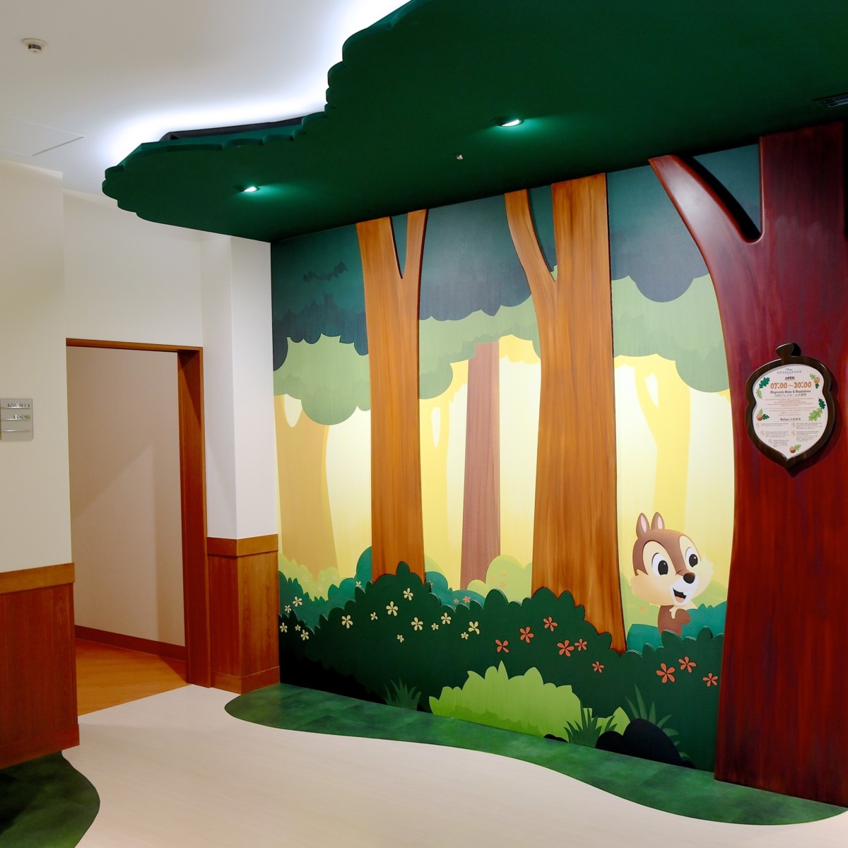 「チップとデールのプレイグラウンド」にはプレイグラウンドをみているようなチップとデール、どんぐりなどかわいいデコレーションが施されています。