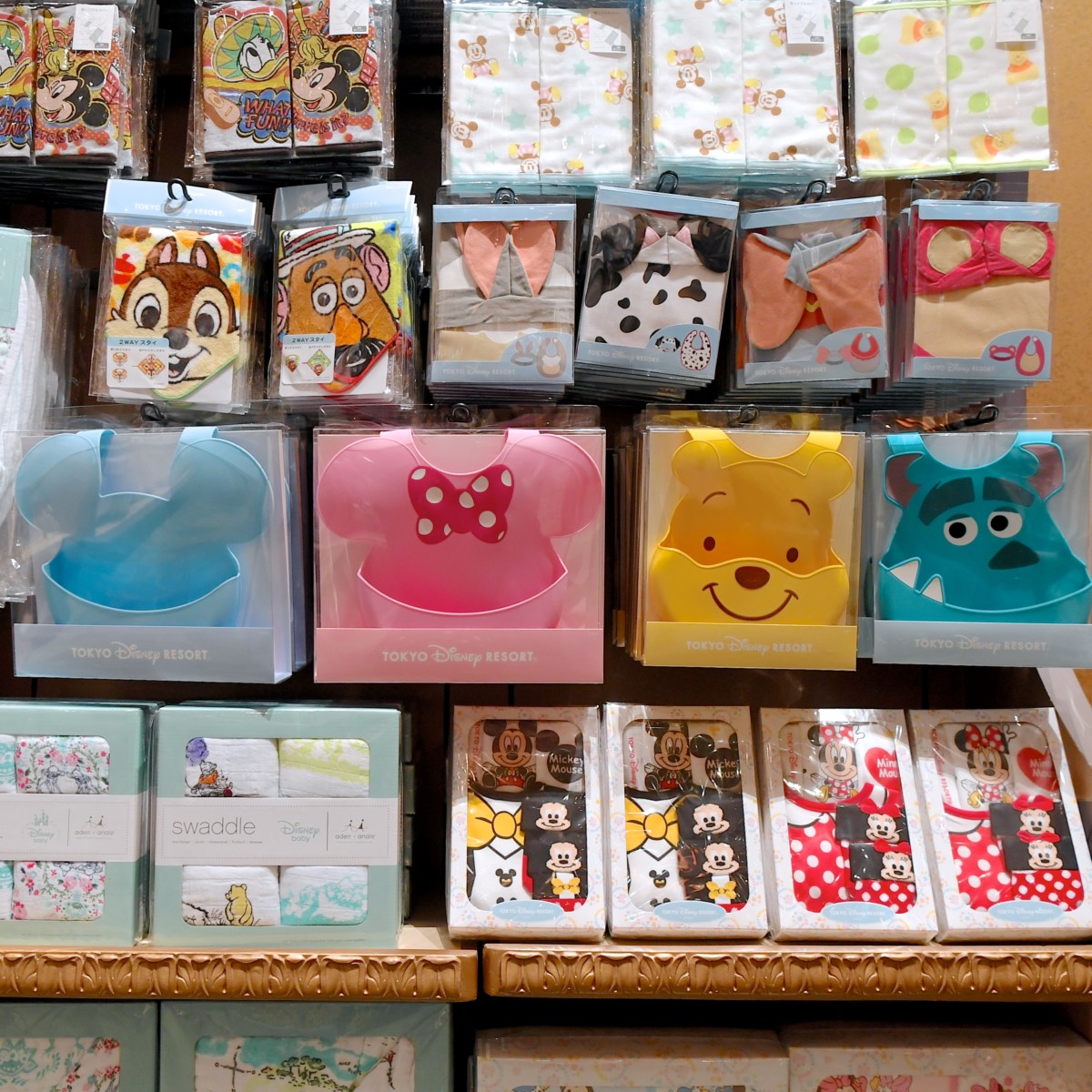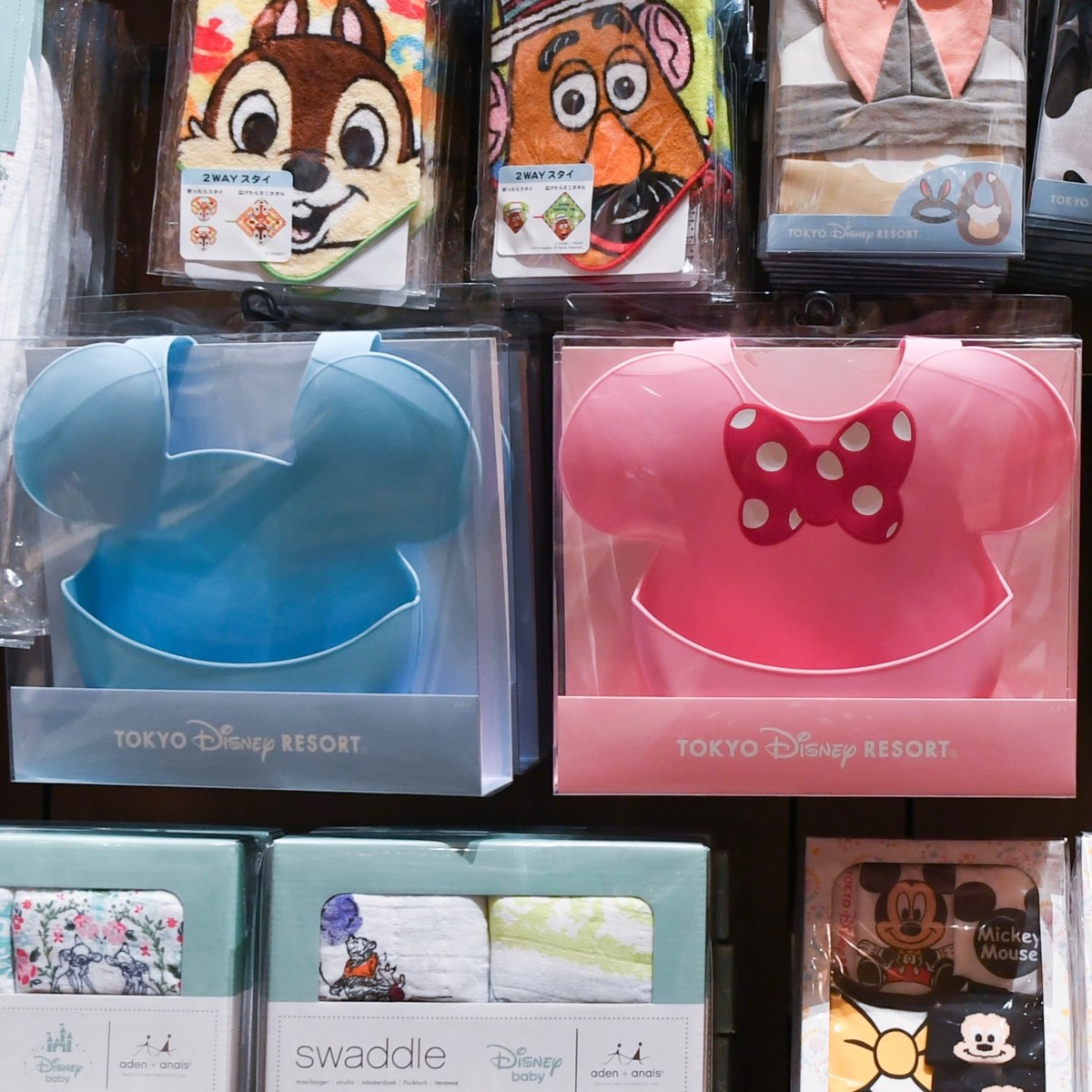 東京ディズニーランド、東京ディズニーシーではオリジナルのベビーグッズを種類豊富に販売中。
