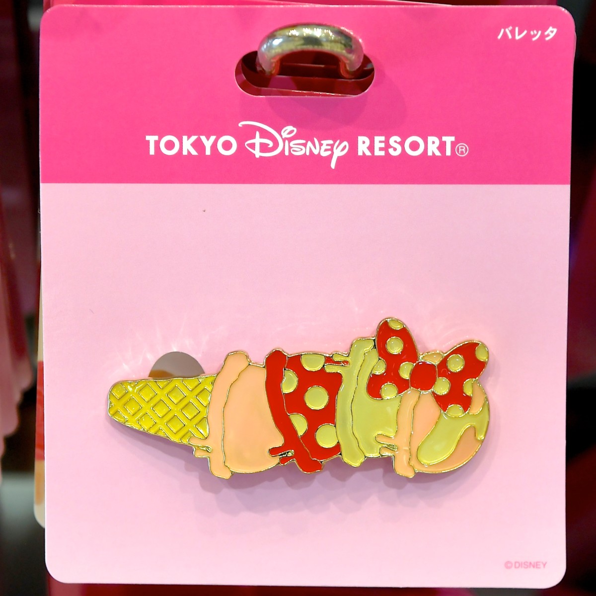 アイスクリームにミニーらしいドット柄のアイス、リボンがデザインされたバレッタ。