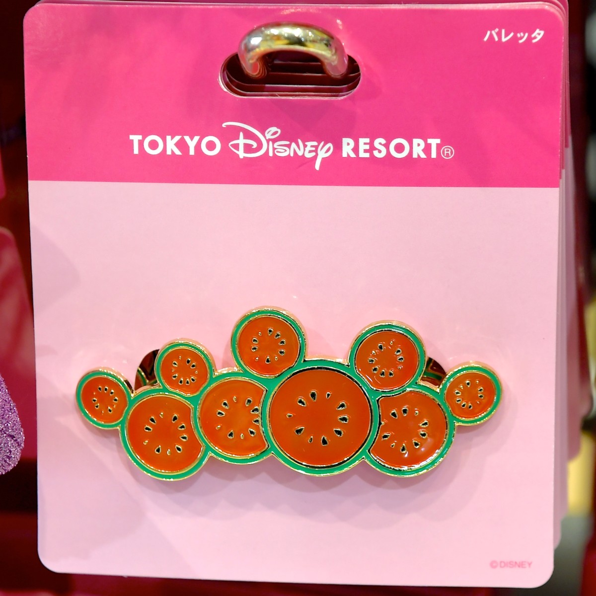 鮮やかなスイカデザインのミッキーシェイプバレッタ。