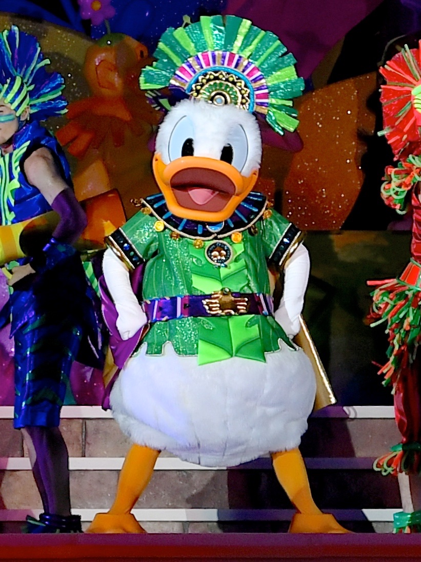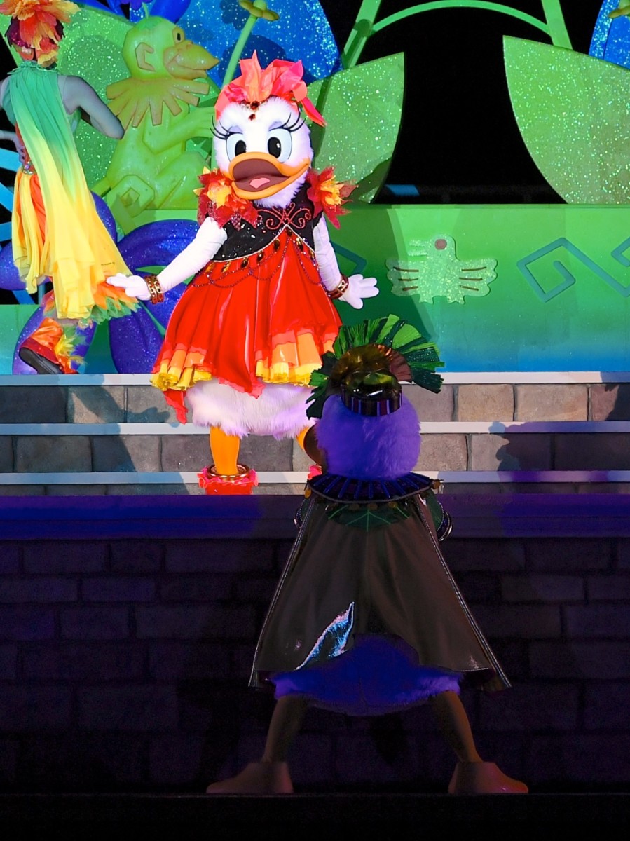 シンデレラ城前で公演される夜の新ステージショー、ドナルドが主役の『オー!サマー・バンザイ!』ではカラフルなジャングル
