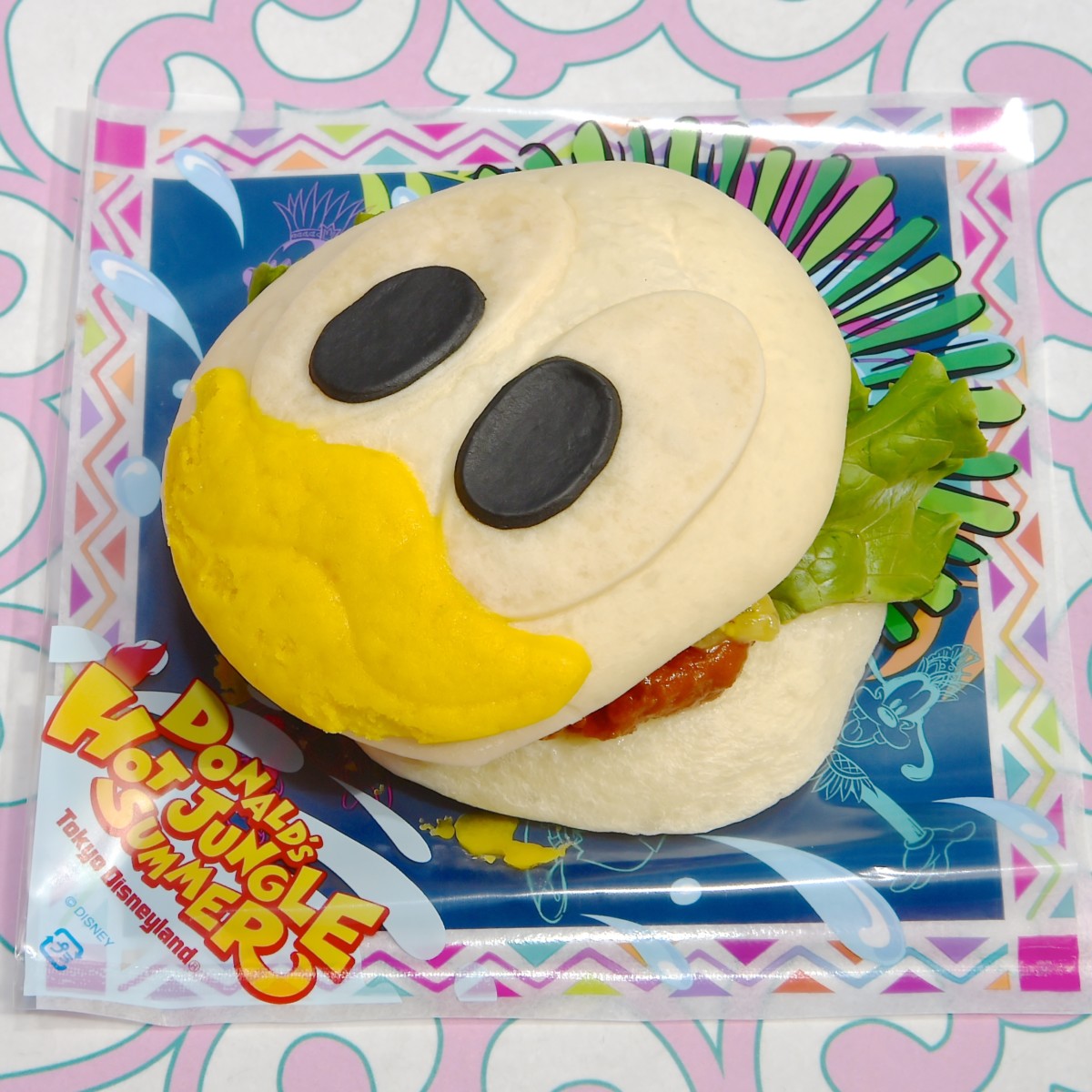 2019年夏のスペシャルイベント"ドナルドのホット・ジャングル・サマー2019"のメインショー『オー!サマー・バンザイ!』の主役「ドナルドダック」のお顔型サンドウィッチ。