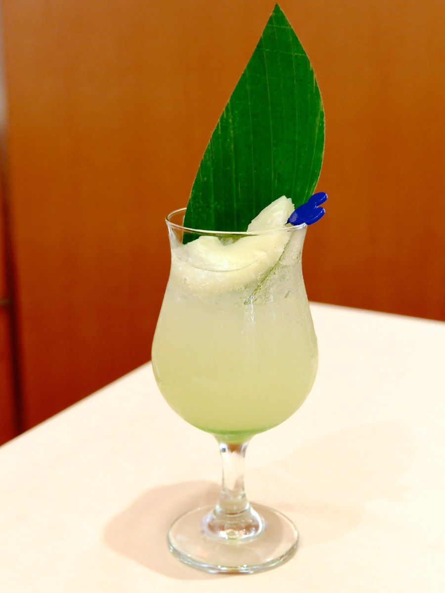 パイナップルジュース、グリーンバナナシロップ、フレッシュライムジュース、クラブソーダ、スライスパイナップル入りで夏らしい味わいがたのしめます☆