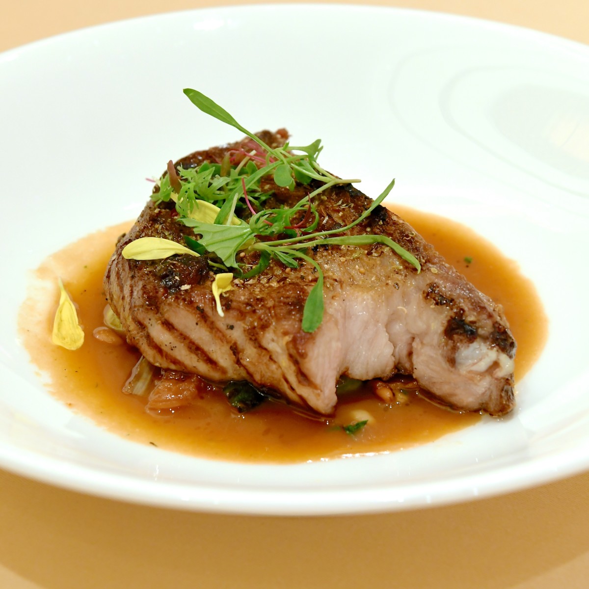ハーブを纏ったマグロのレアグリル ナッツ風味のアングレーズエスプーマとともに