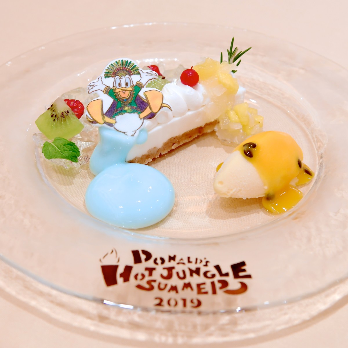 デザートは東京ディズニーランドの夏のナイトキャッスルショー”オー!サマー・バンザイ!”のドナルドがデザインされたメニュー。