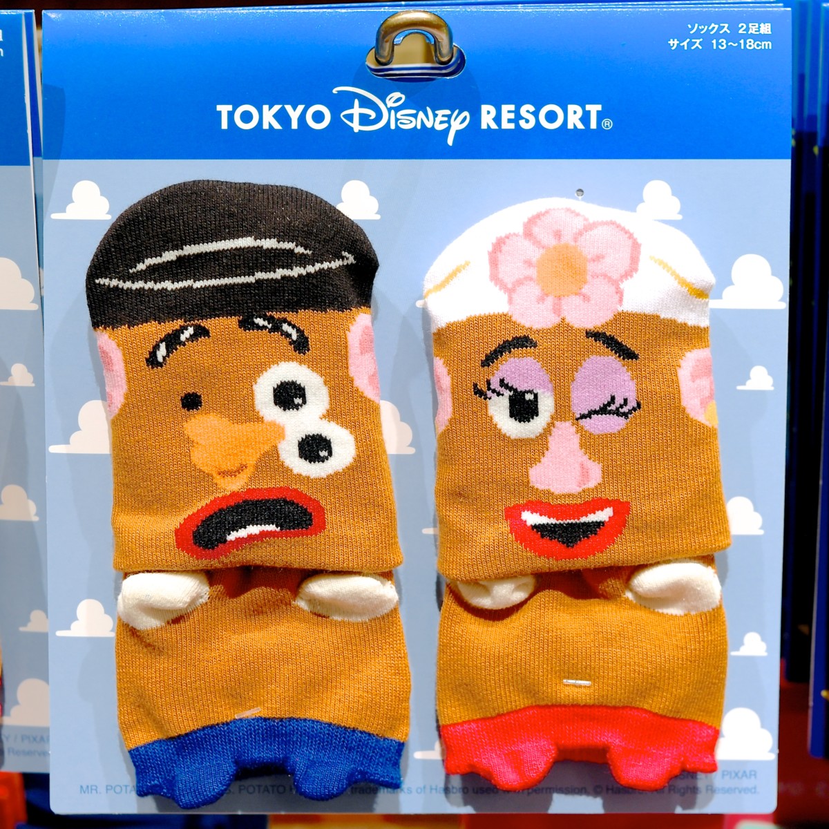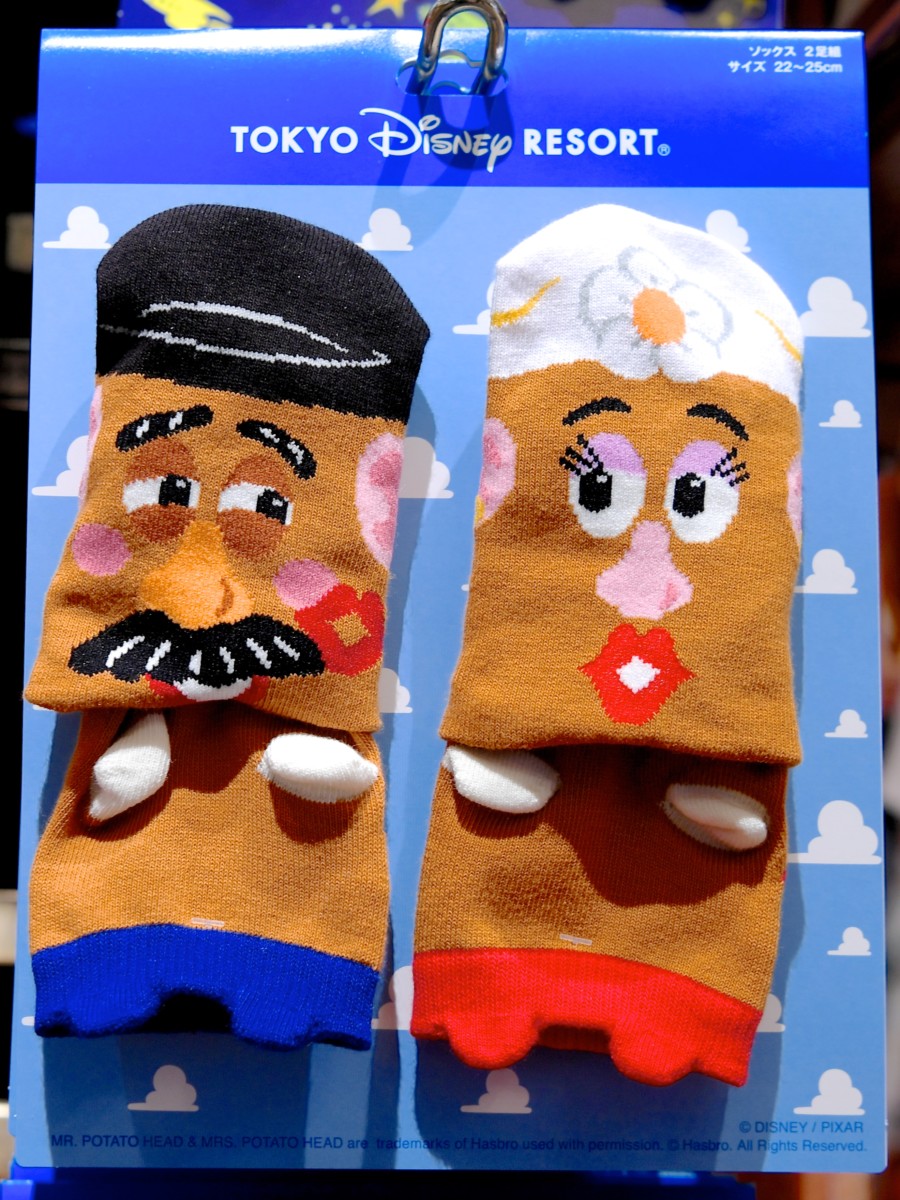 お目々とお鼻がずれてしまっている様子がかわいいキッズサイズのポテトヘッド夫妻ソックス(靴下)も☆