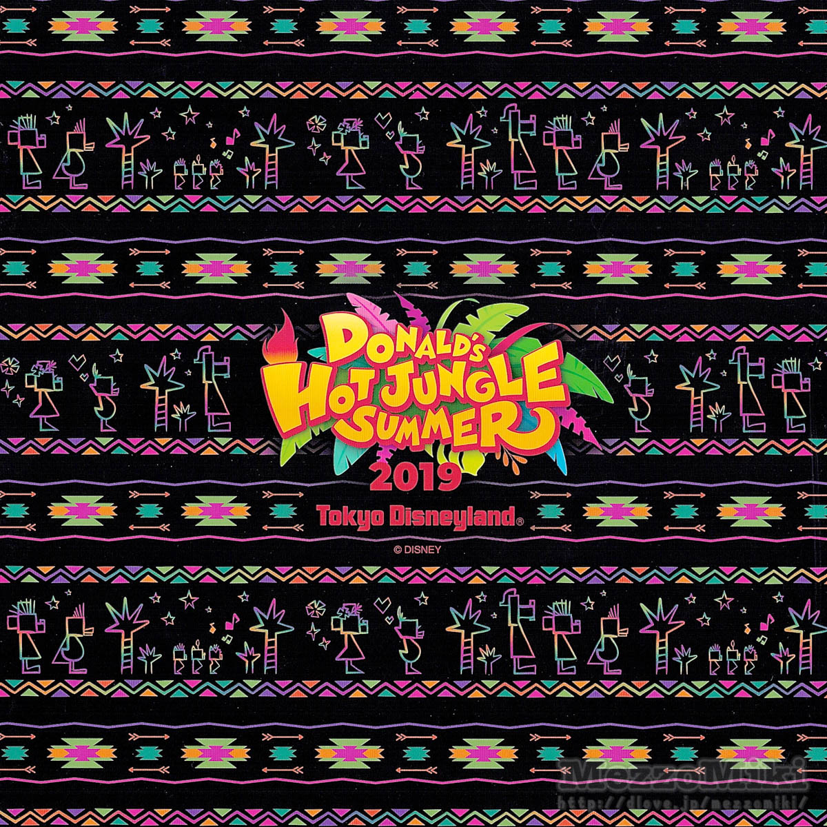裏表紙は“ドナルドのホット・ジャングル・サマー2019”のロゴと、ドナルドたちの象形文字風のイラストがデザインされています。