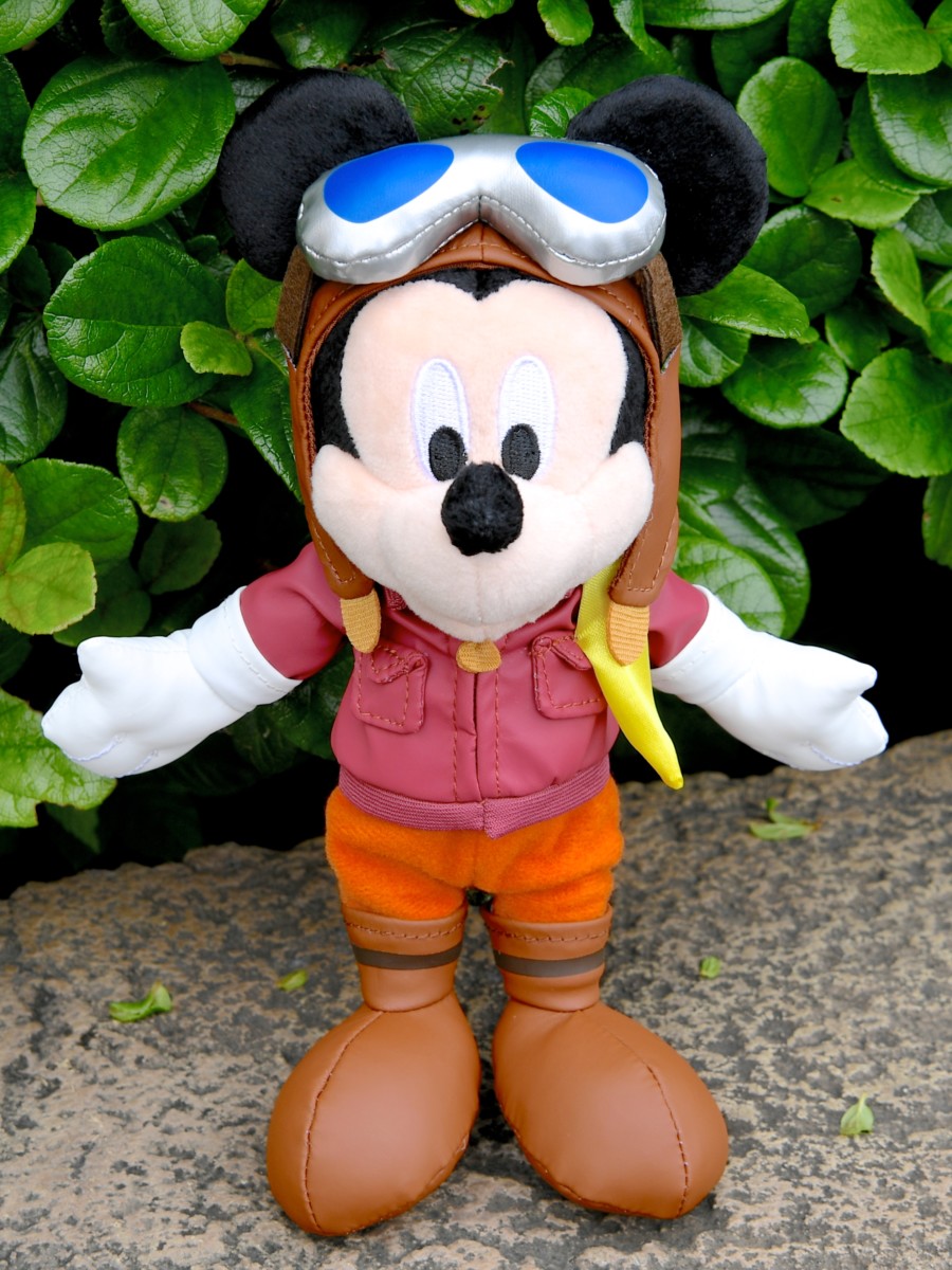 ゴーグルをつけた操縦士ミッキーぬいぐるみバッジ。