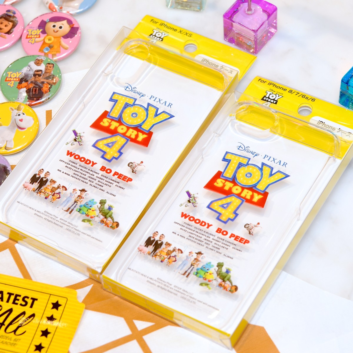『トイ・ストーリー4』の大きなロゴに、キャラクターがデザインされたiPhoneケース。