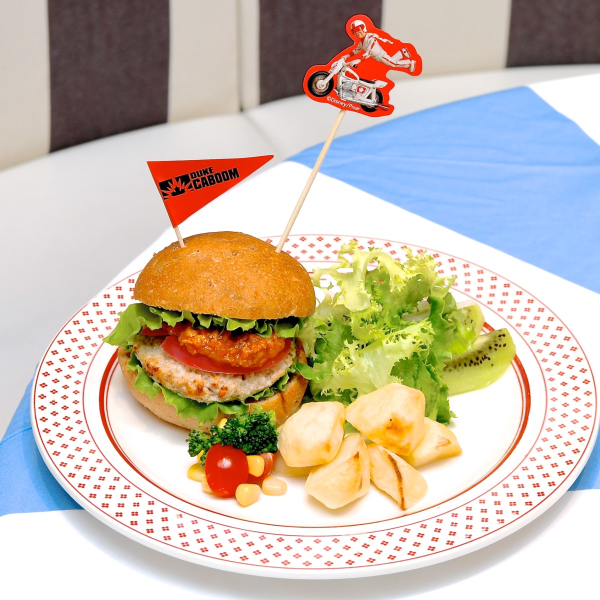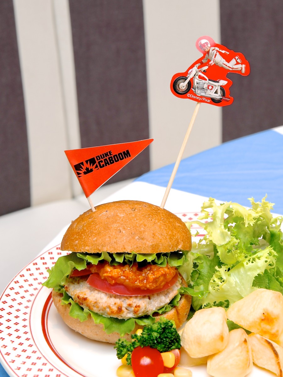 『トイ・ストーリー4』の新キャラクター「デューク・カブーン」をイメージしたチキンバーガー。