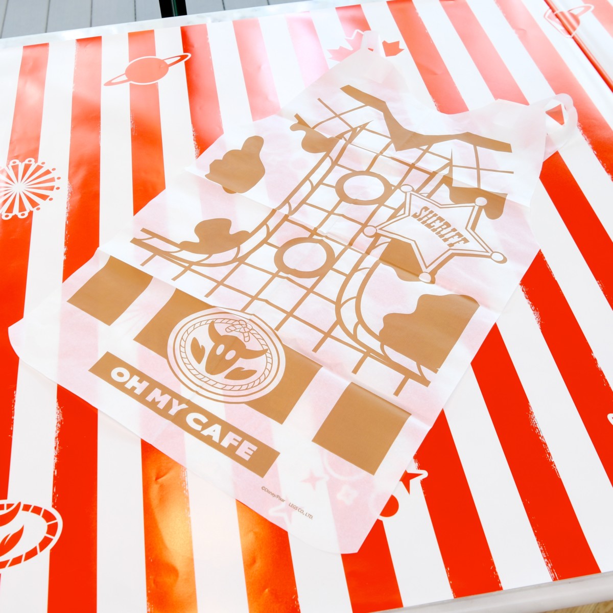 フードの注文で、「ウッディ」がいつも着ているカウボーイコスチュームデザインの「特製ペーパーエプロン」が1つプレゼントされます。