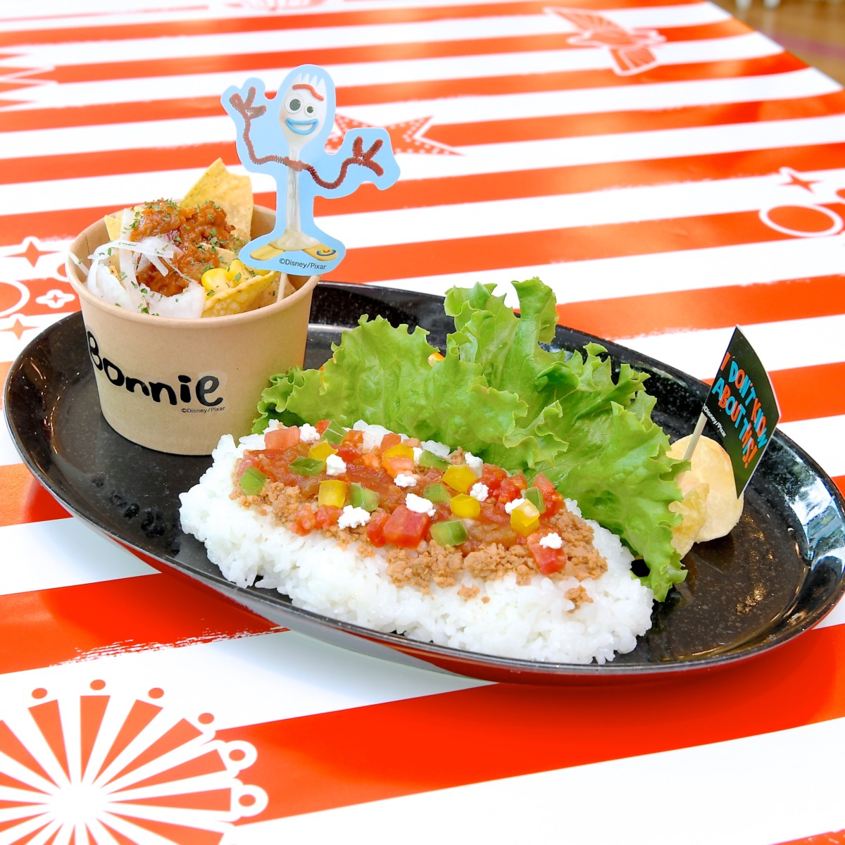 『トイ・ストーリー4』の新キャラクター「フィーキー」をイメージしたタコライスプレート。