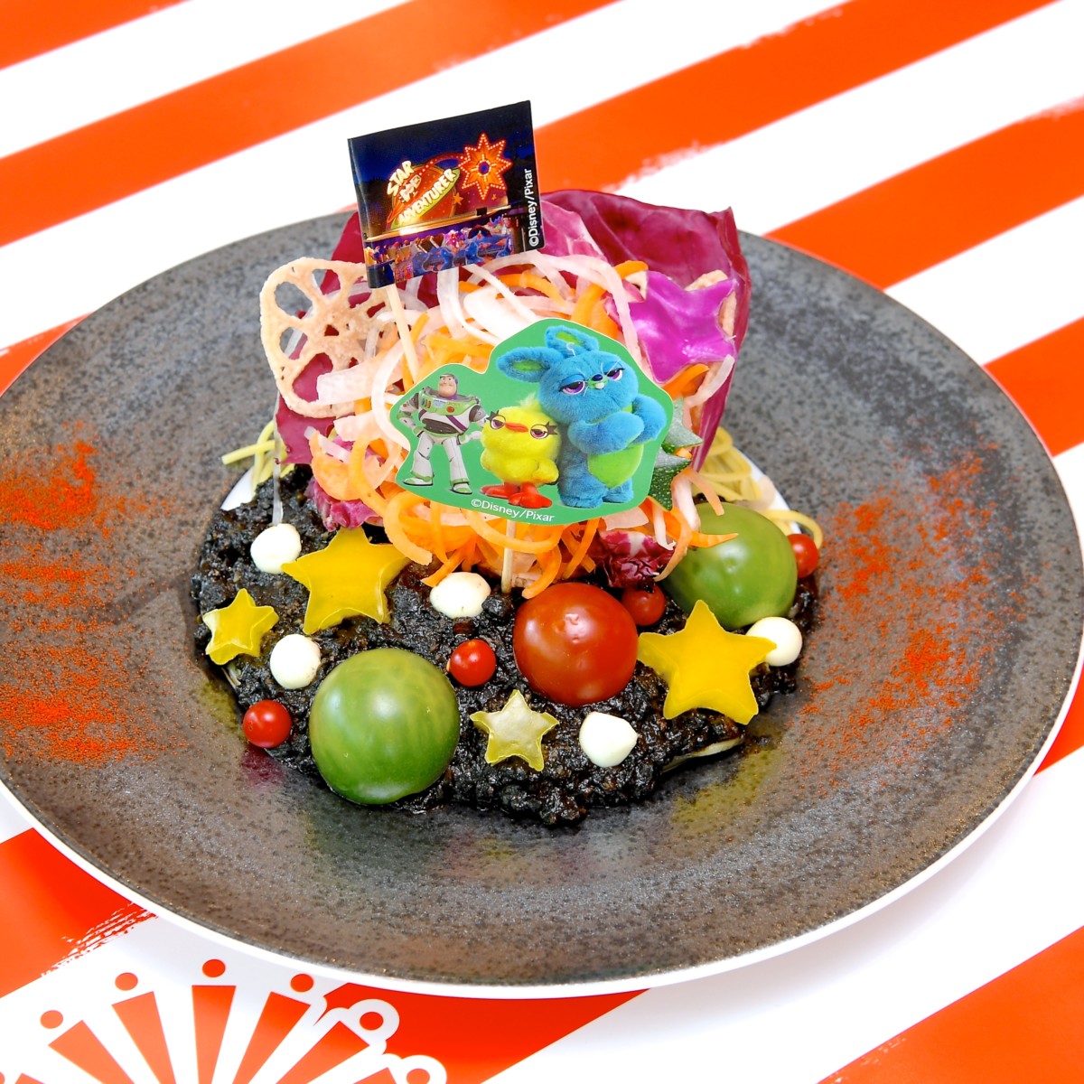 『トイ・ストーリー4』の新キャラクター「ダッキー&バニー」をイメージしたパスタ。