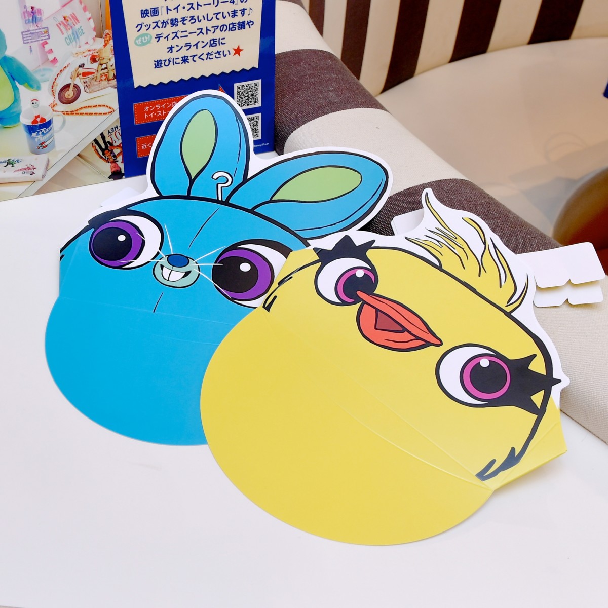 カフェスペースご利用の小学生以下のお客様を対象に、『トイ・ストーリー4』に登場する新キャラクター「ダッキー&バニー」デザインのサンバイザーがプレゼントされます。