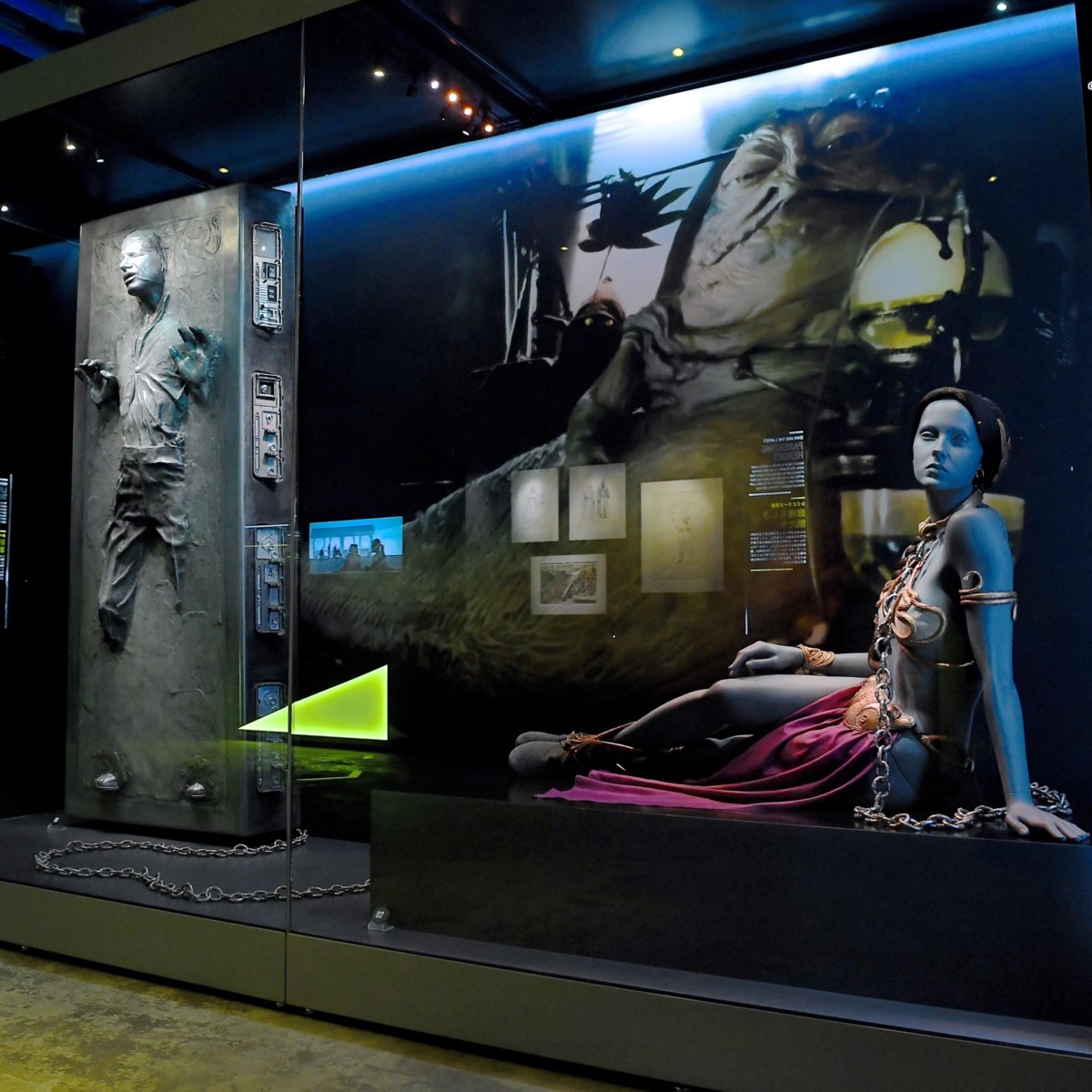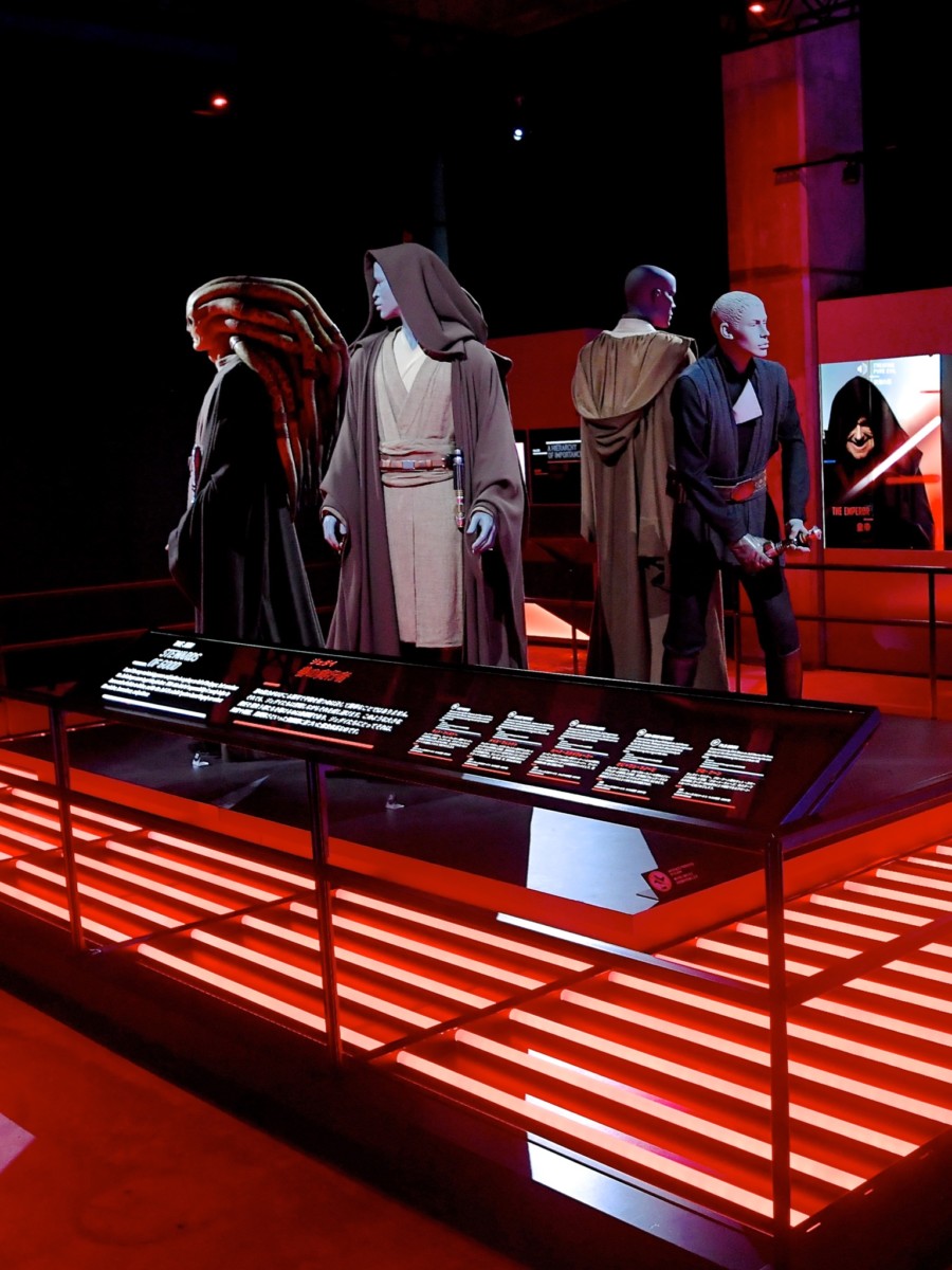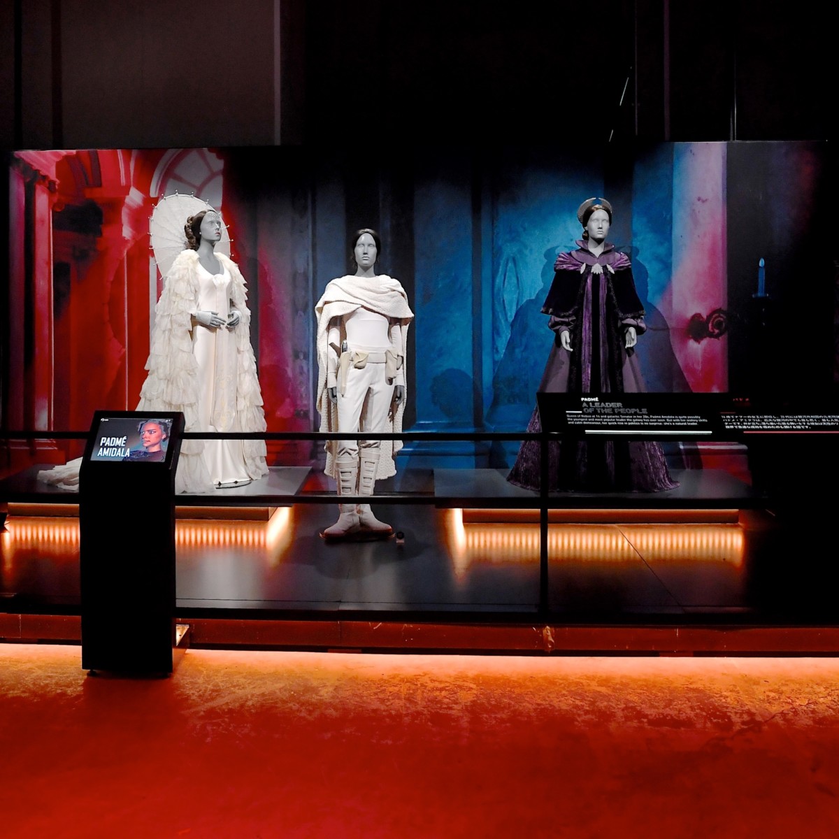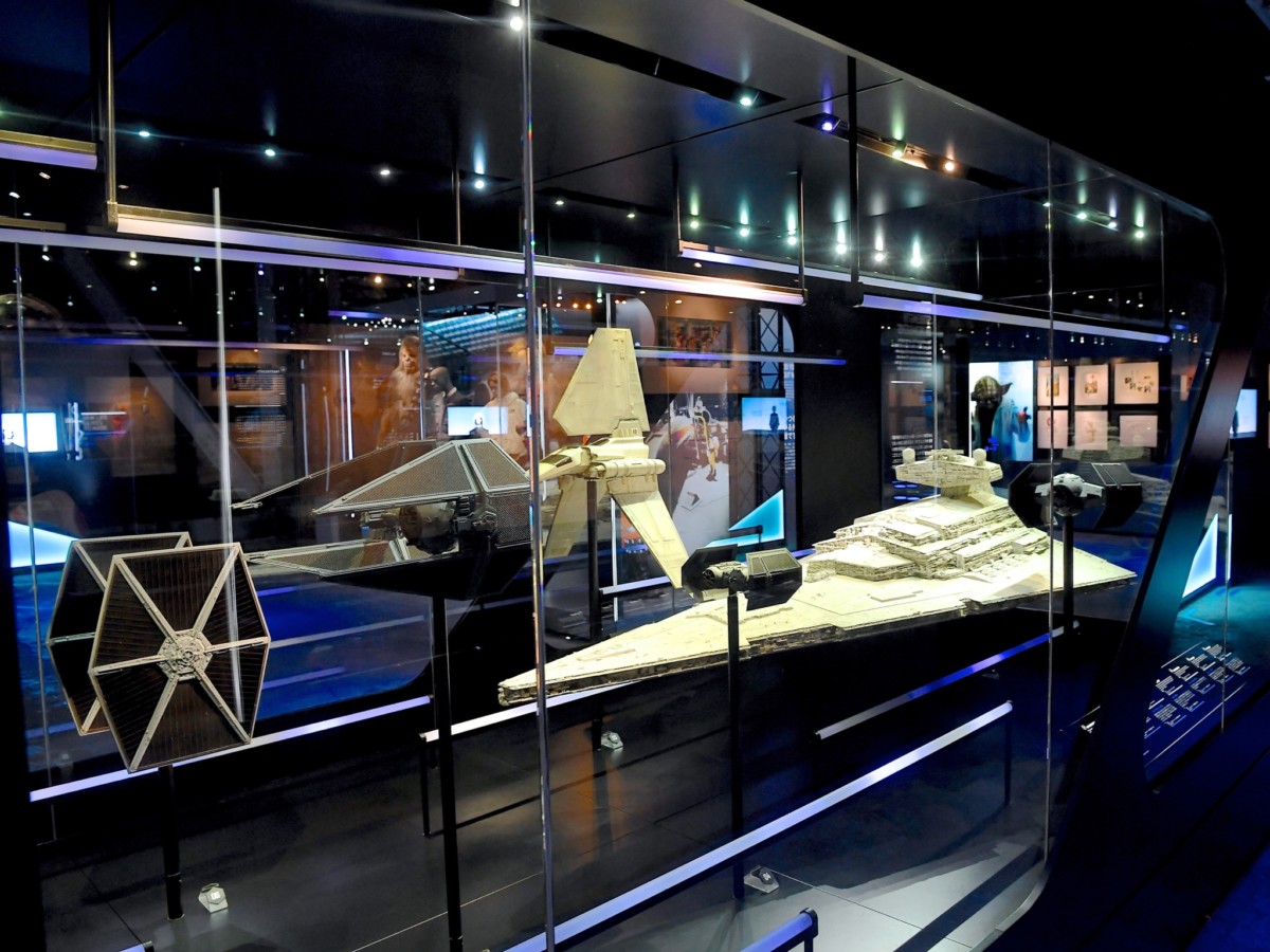 オリジナル・トリロジー(1977年~1983年)、プリクエル・トリロジー(1999年~2005年)、アニメ・シリーズの『スター・ウォーズ:クローン・ウォーズ』、2015 年に公開された『スター・ウォーズ/フォースの覚醒』まで、様々な「スター・ウォーズ」シリーズの資料が展示されています。