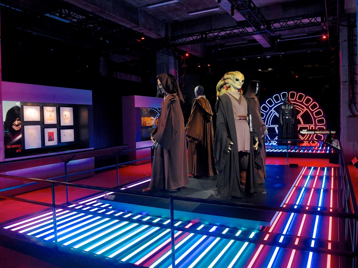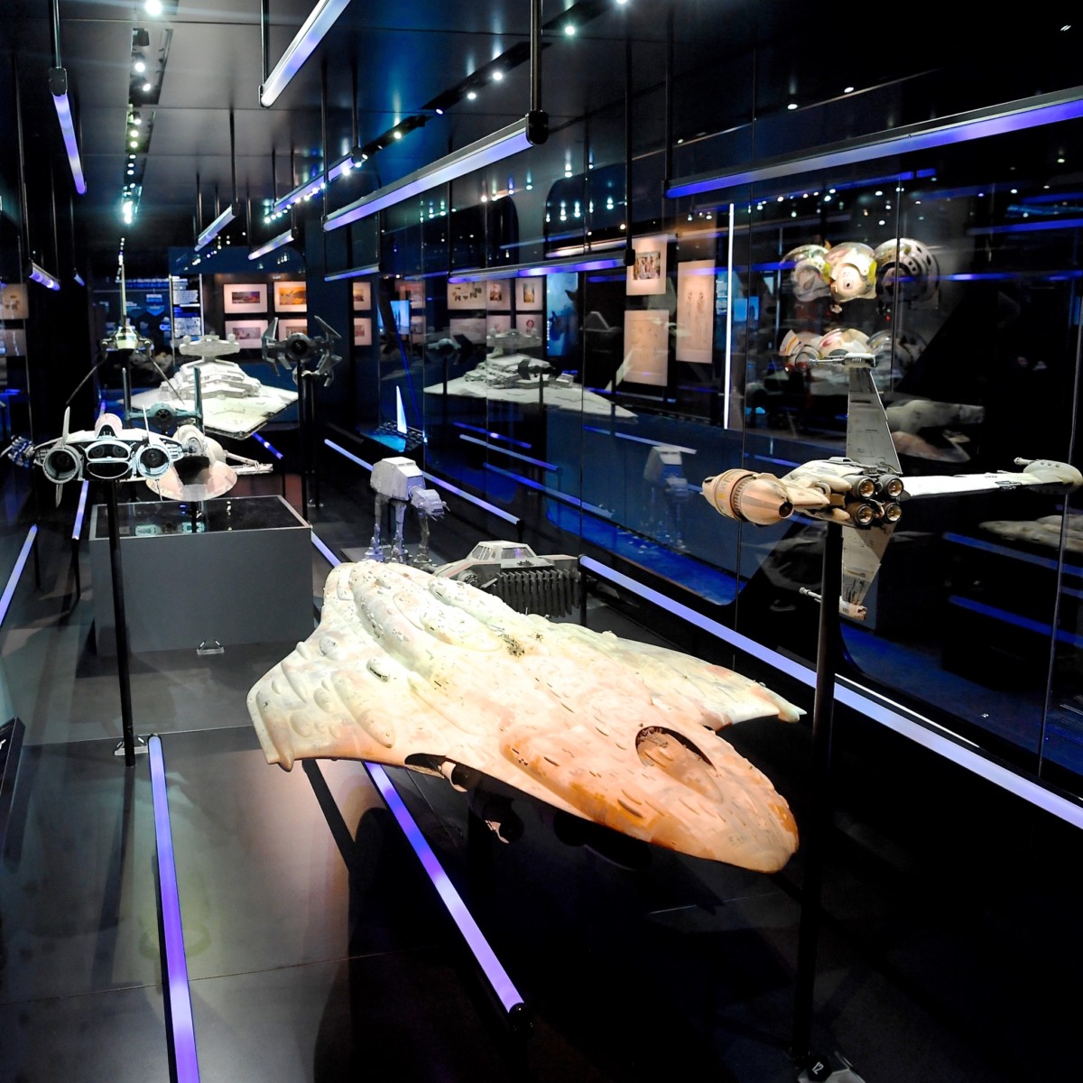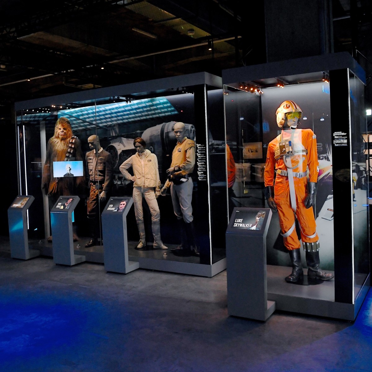 オリジナル・トリロジー(1977年~1983年)、プリクエル・トリロジー(1999年~2005年)、アニメ・シリーズの『スター・ウォーズ:クローン・ウォーズ』、2015 年に公開された『スター・ウォーズ/フォースの覚醒』まで、様々な「スター・ウォーズ」シリーズの資料が展示されています。