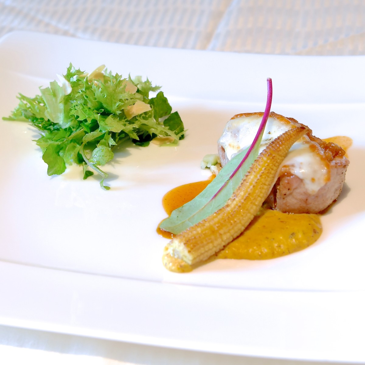 ※別途¥1,000で「牛フィレ肉のグリルと茗荷のフリット 赤ワインヴィネグレットのアクセント」に変更できます。