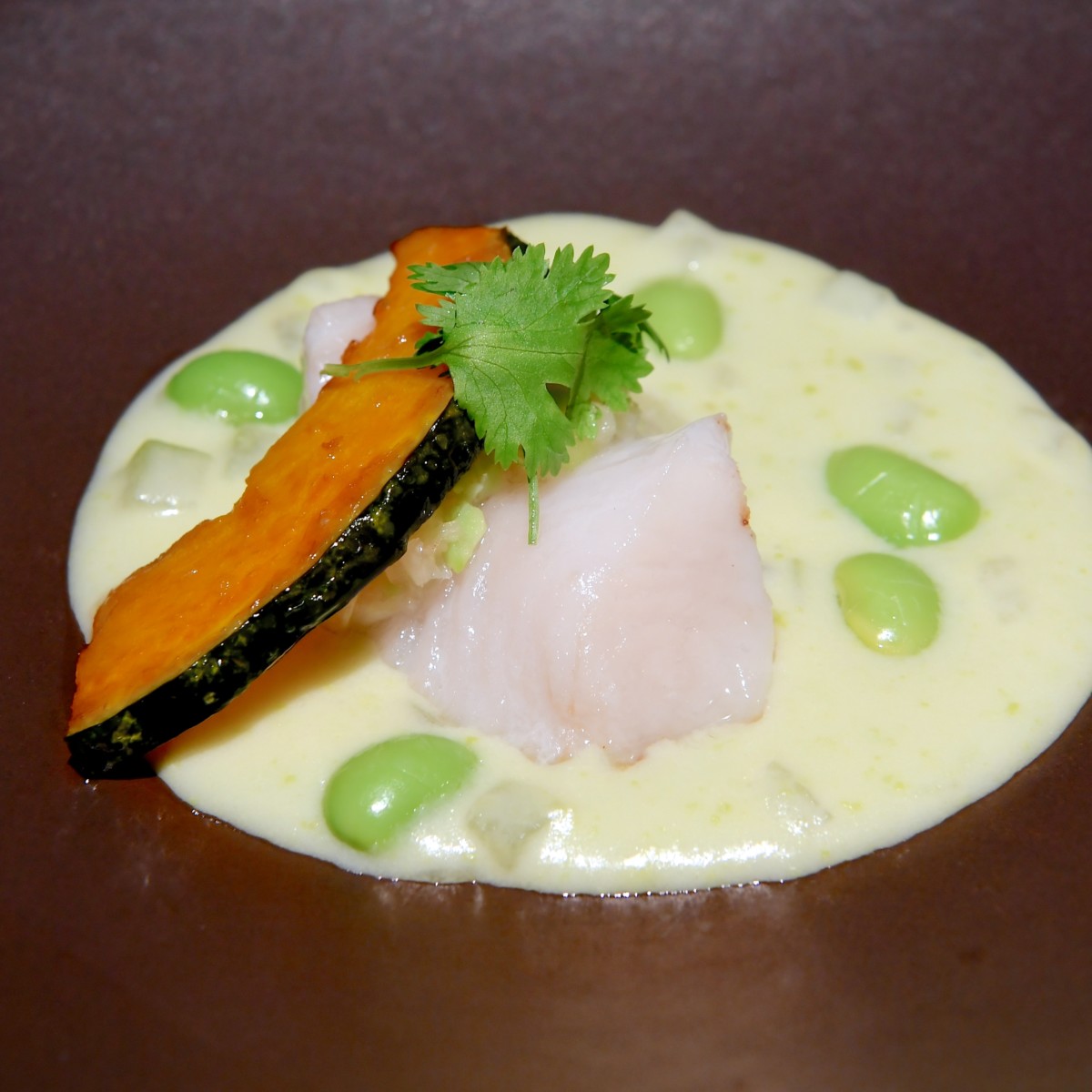 葱生姜、クリーミーな枝豆ソースがよくあいます。
