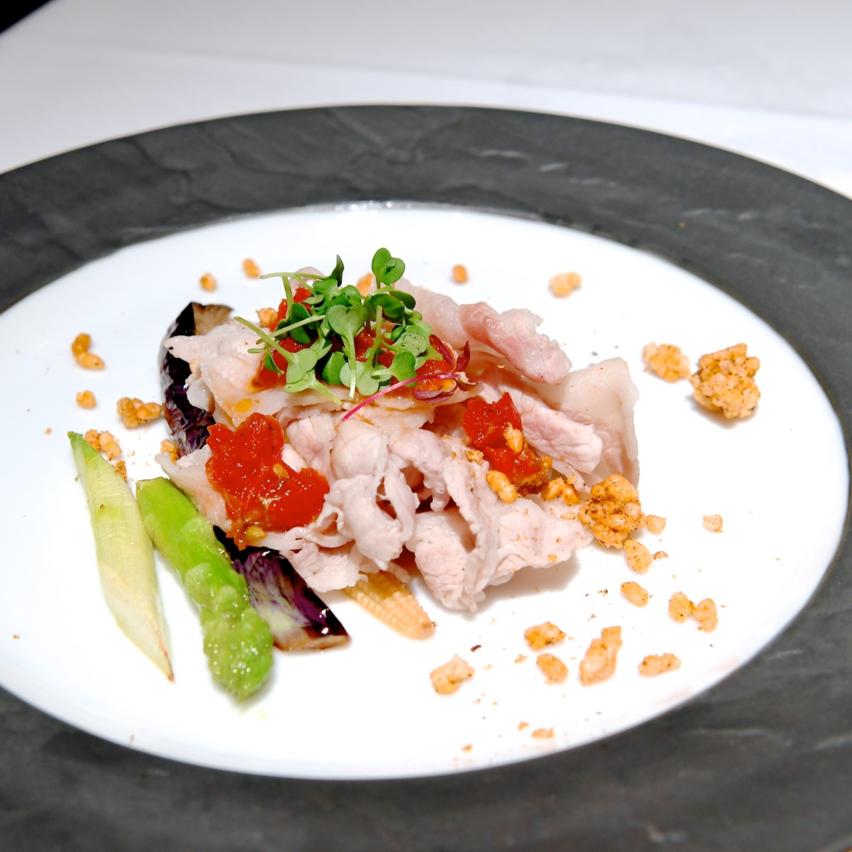 ※別途¥900で「和牛サーロインと野菜の湯引き チリトマトソース」に変更できます。