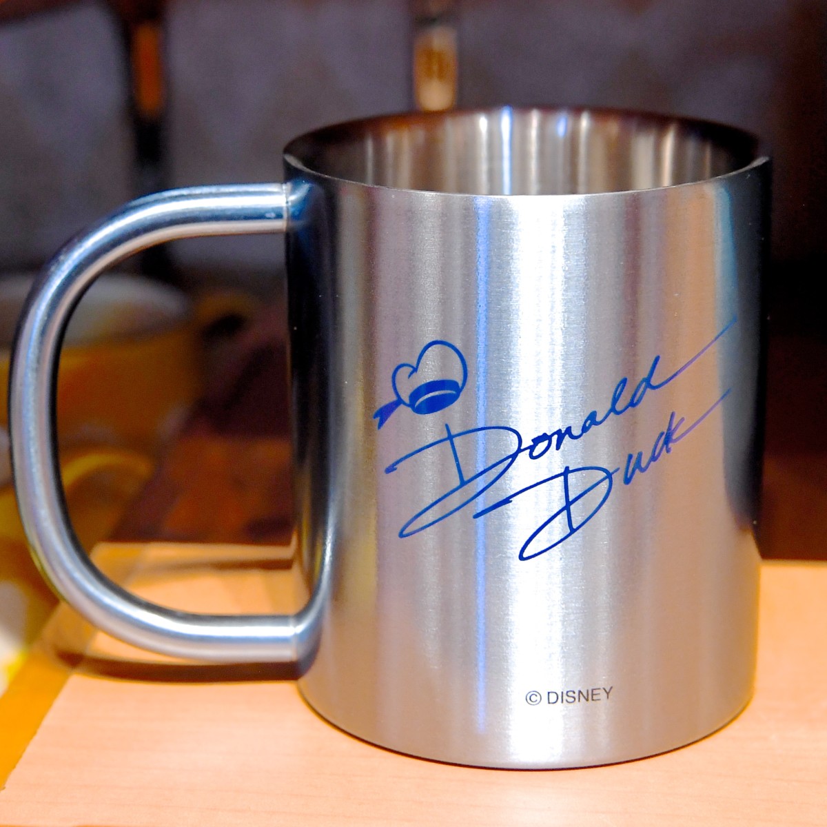 ドナルドのマグカップはクールなブルー。