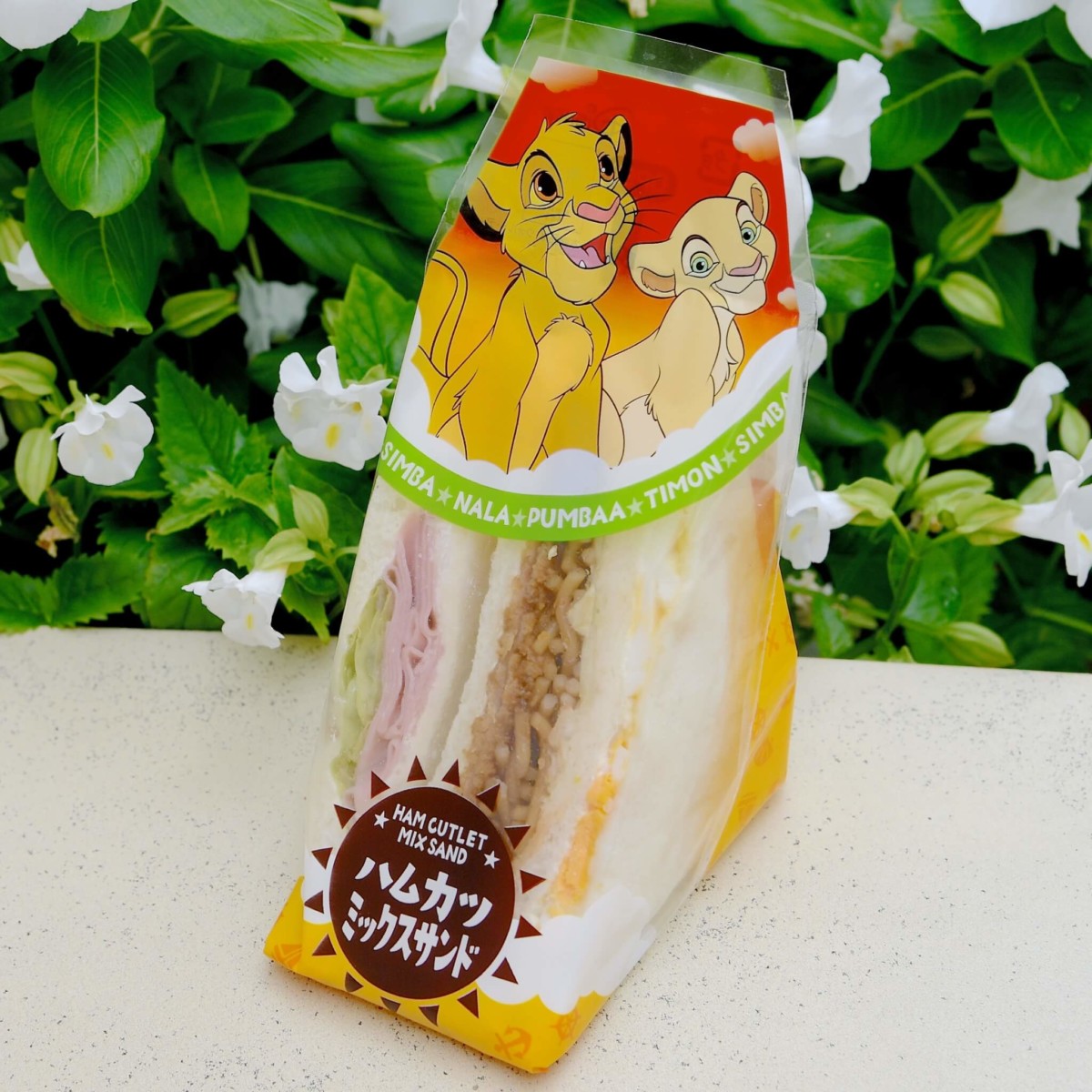 実写版公開中の『ライオン・キング』から主人公のシンバとナラがデザインされたハムカツミックスサンド。