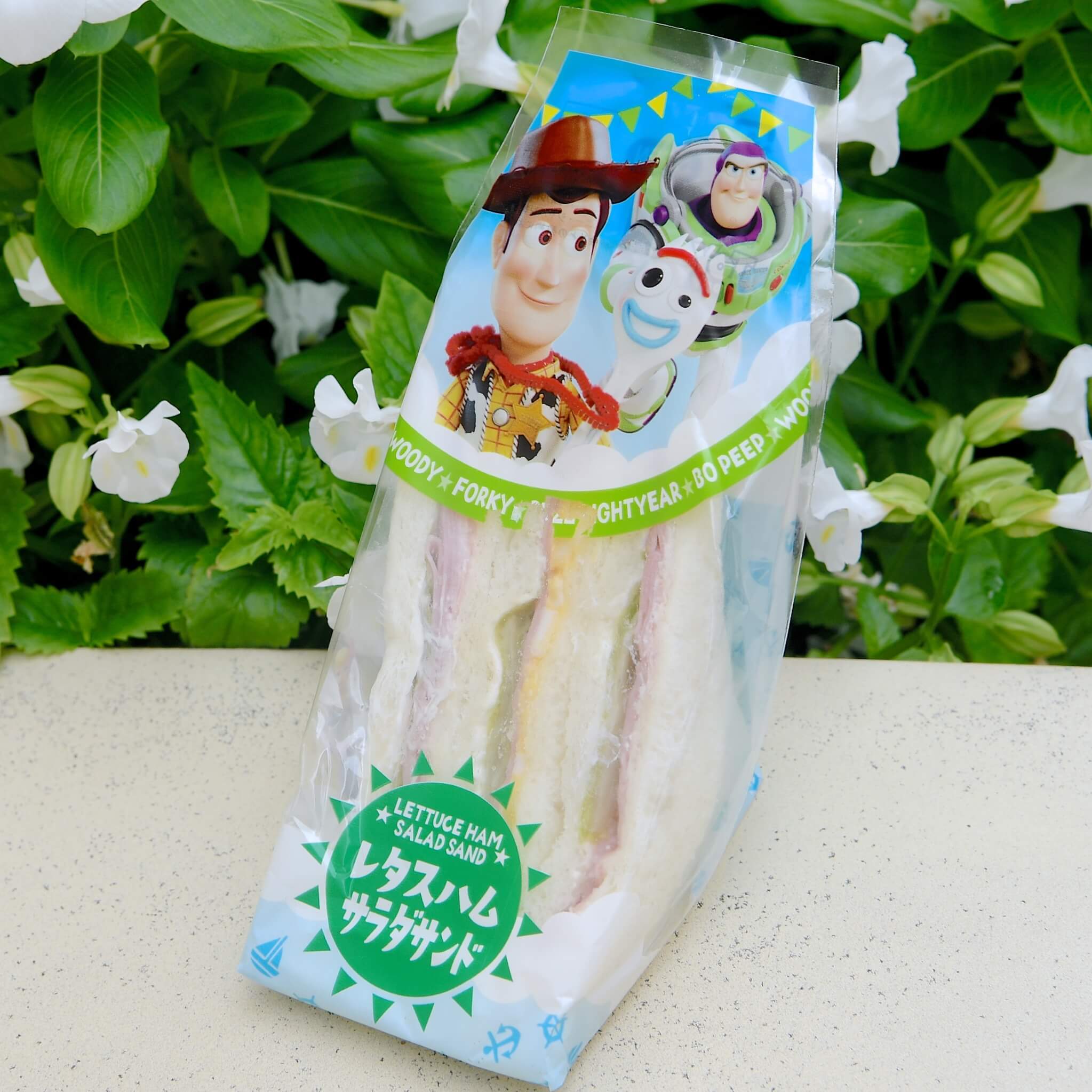 ディズニー/ピクサー映画『トイ・ストーリー』の主人公コンビ、ウッディ&バズがデザインされたレタスハムサラダサンド。