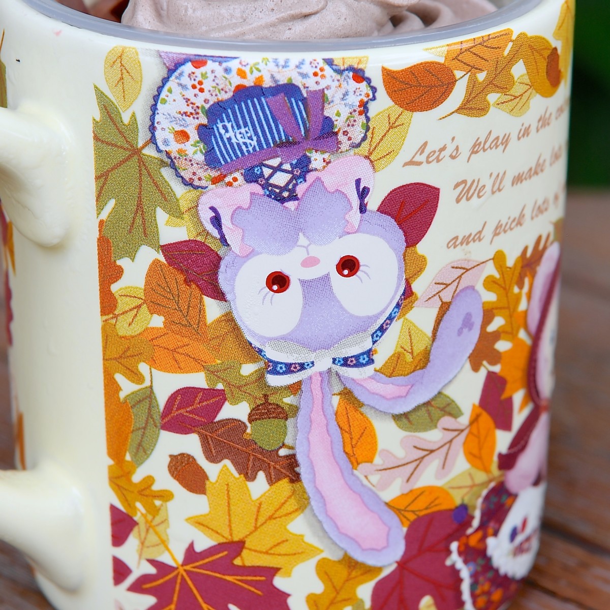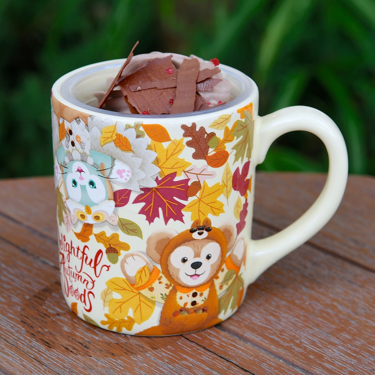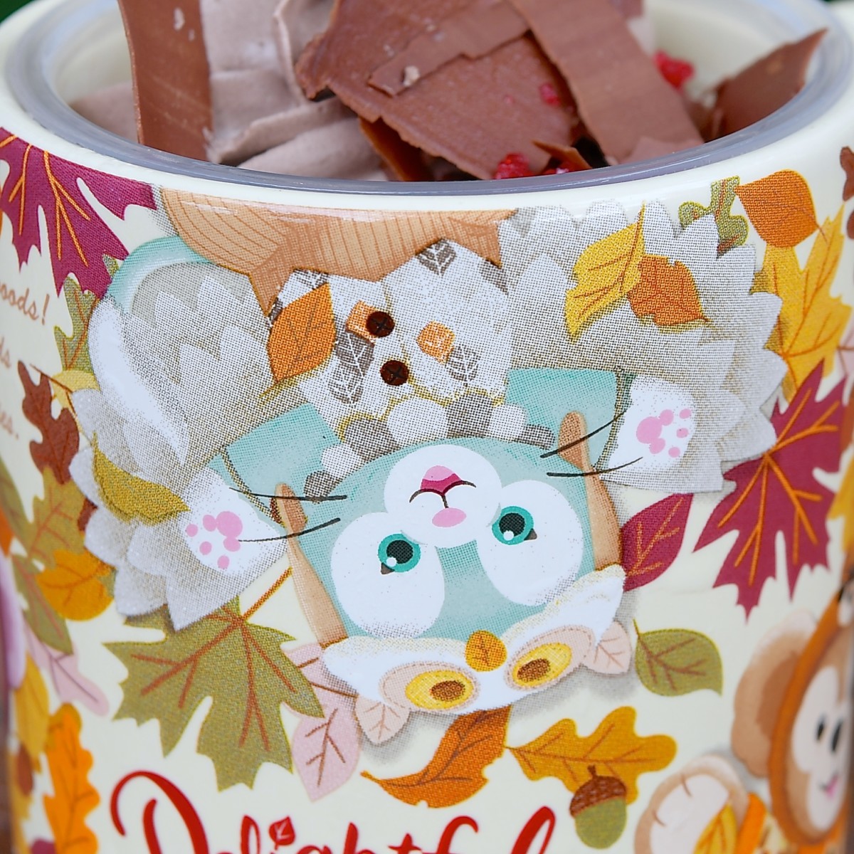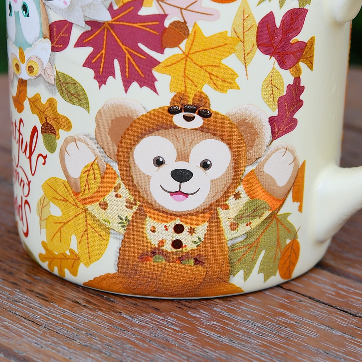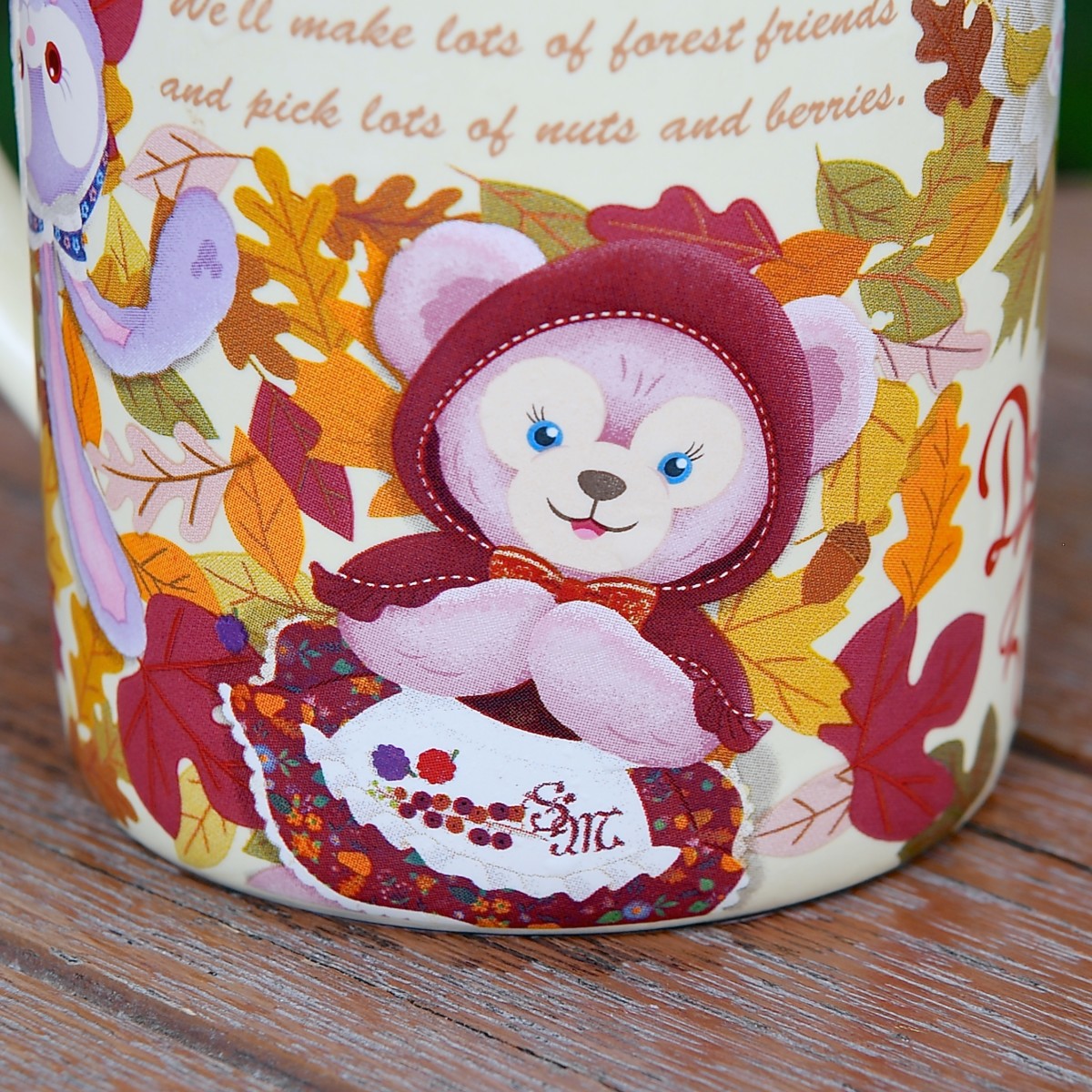 カップには、森の友達と仲良くなれるようリスやフクロウの格好をしたダッフィーと