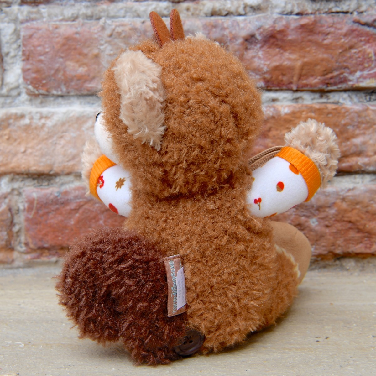 かわいい仮装でリスになりきっている「ダッフィー」のぬいぐるみ。