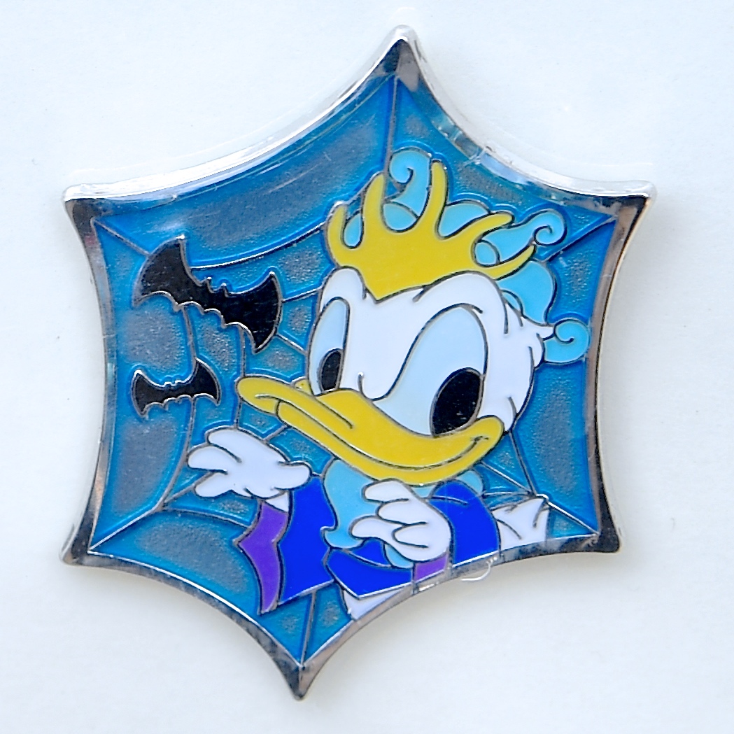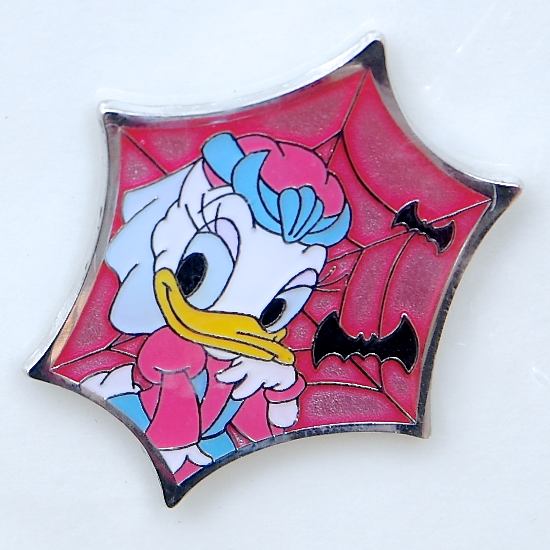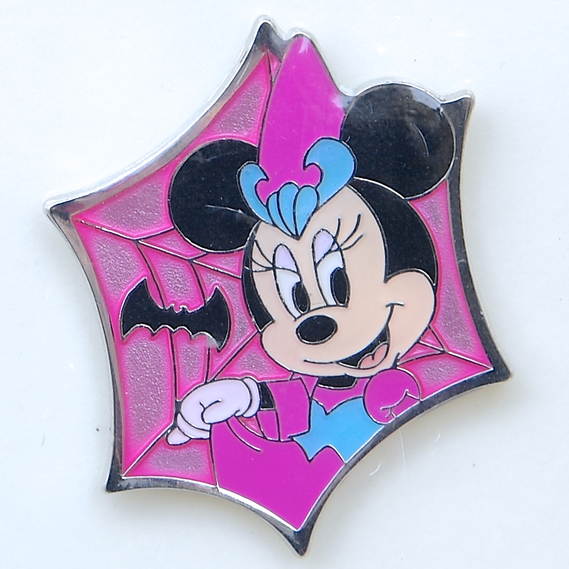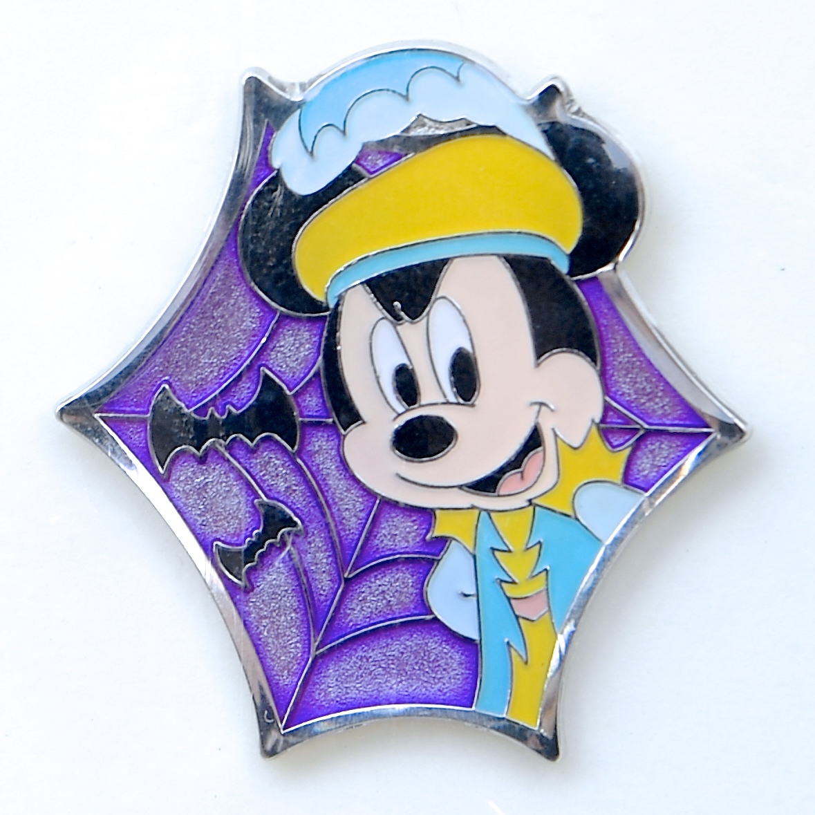 ダークな紫色の蜘蛛の巣と一緒にデザインされたミッキーデザインピン。