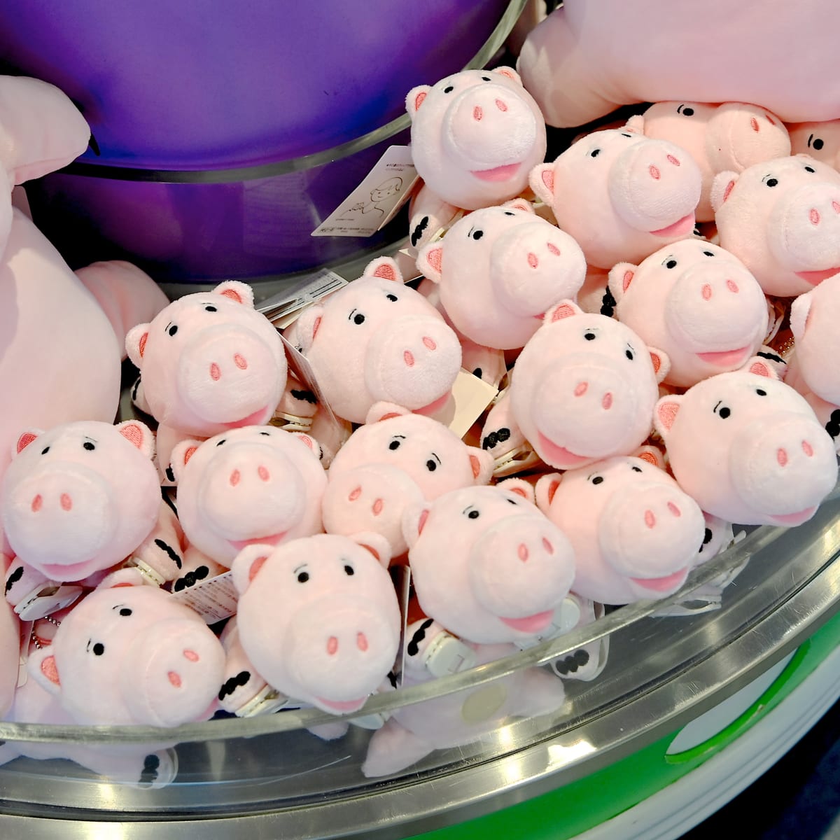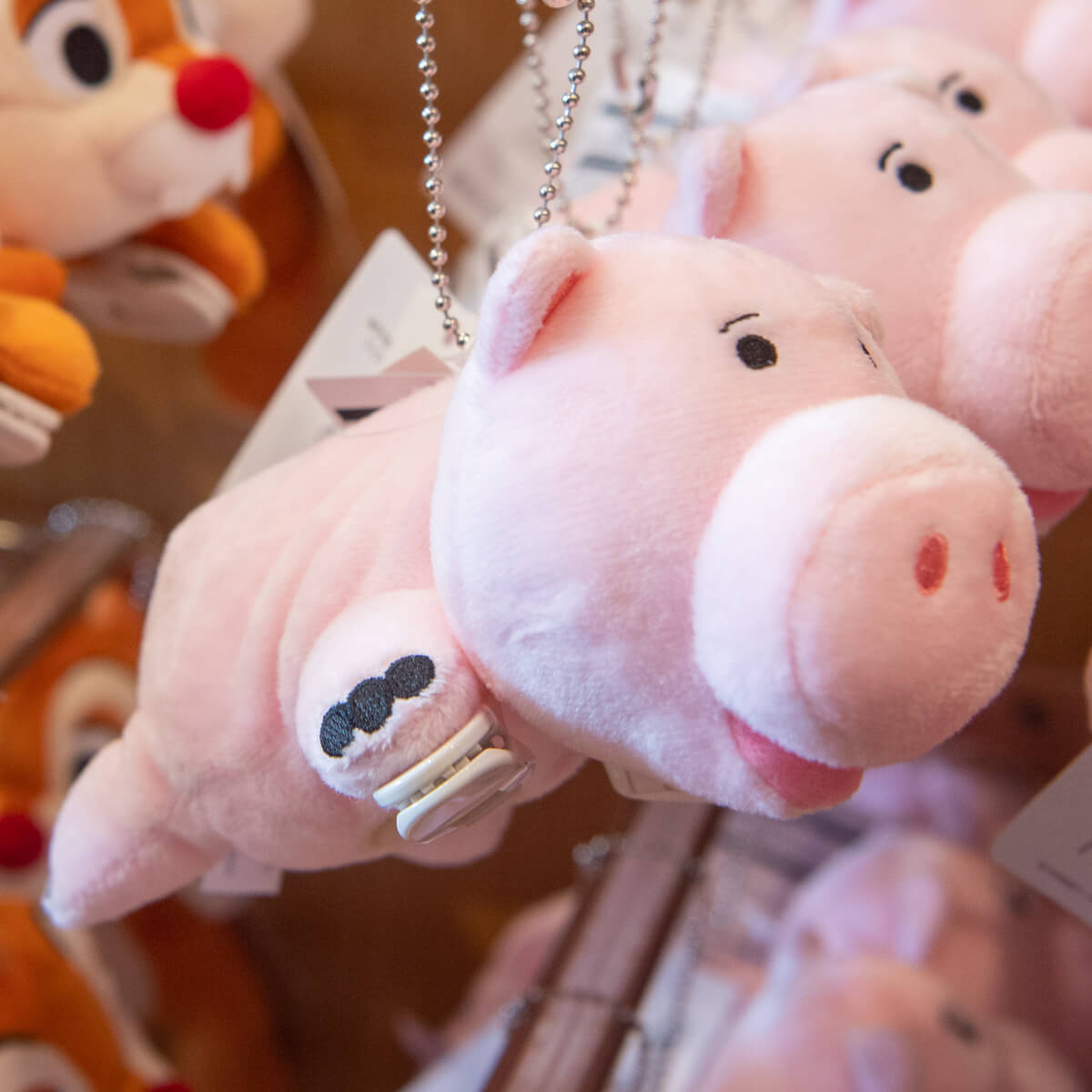 『トイ・ストーリー』シリーズの人気キャラクター、ぶたの貯金箱、ハムのくっつきぬいぐるみ。