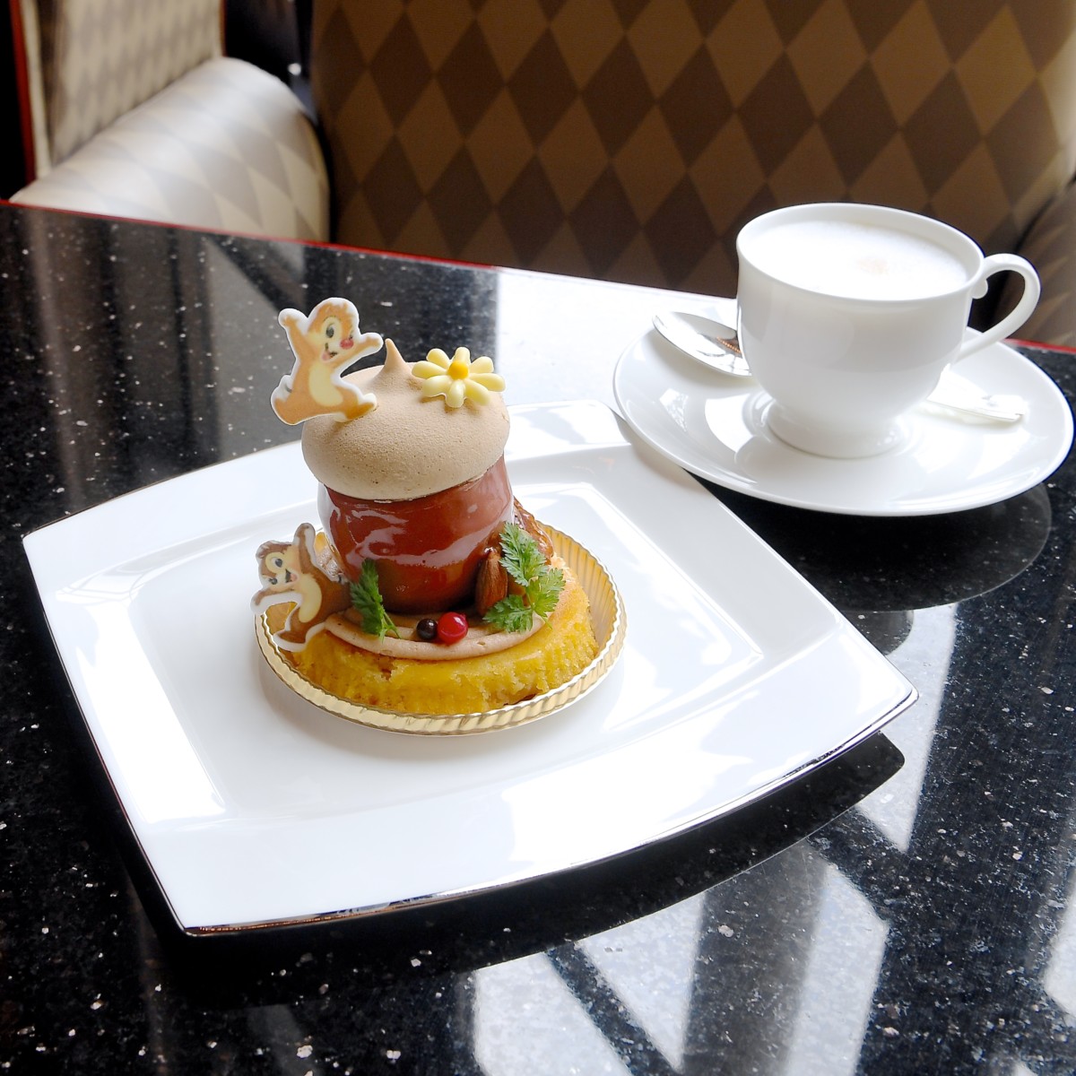 チップとデールモチーフのチョコとマロンのケーキ!ハイピリオン・ラウンジスペシャルケーキセットの紹介でした。