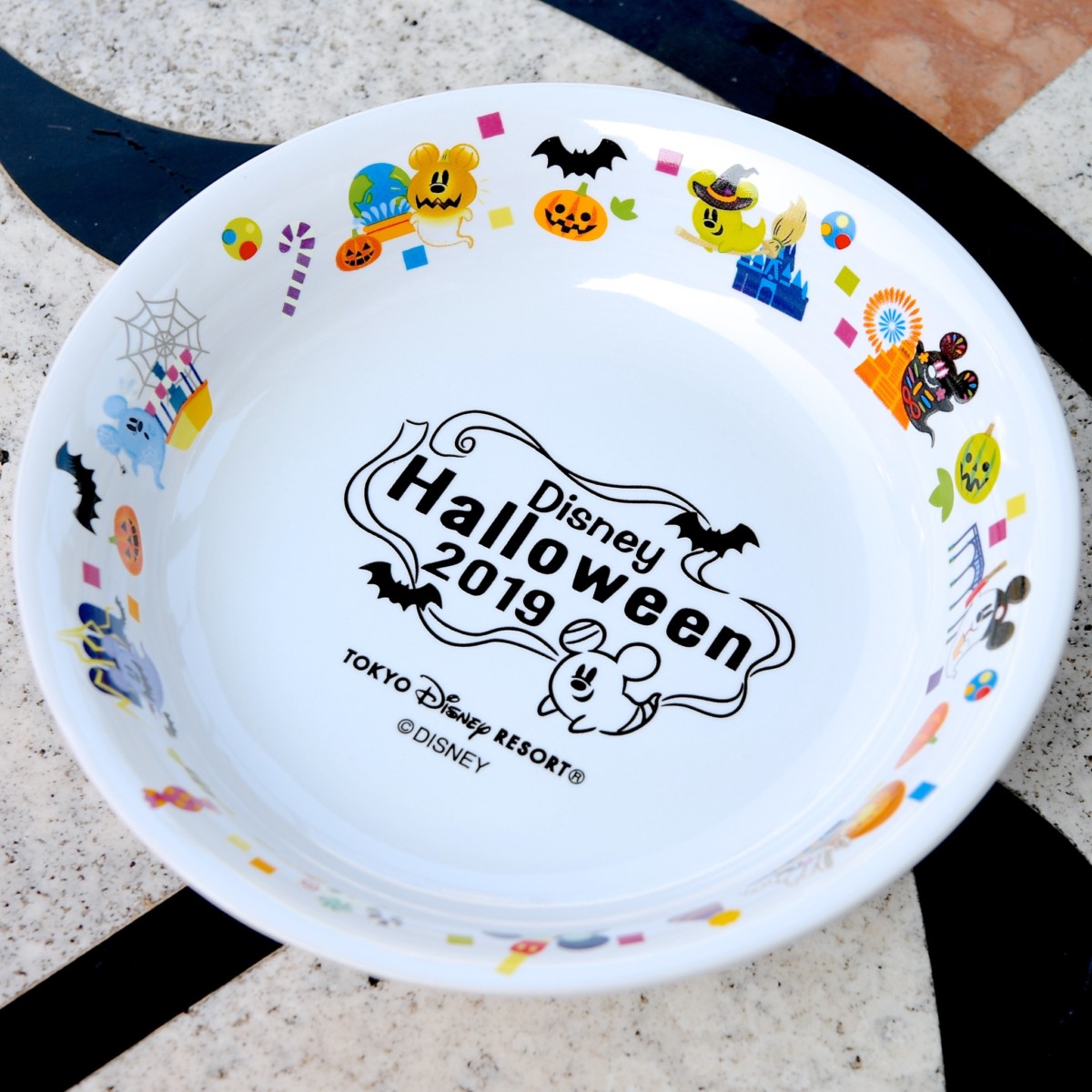 仮装をしたミッキーおばけたちがハロウィーンを楽しむ様子がプレートをぐるりと一周囲むようにデザインされています☆