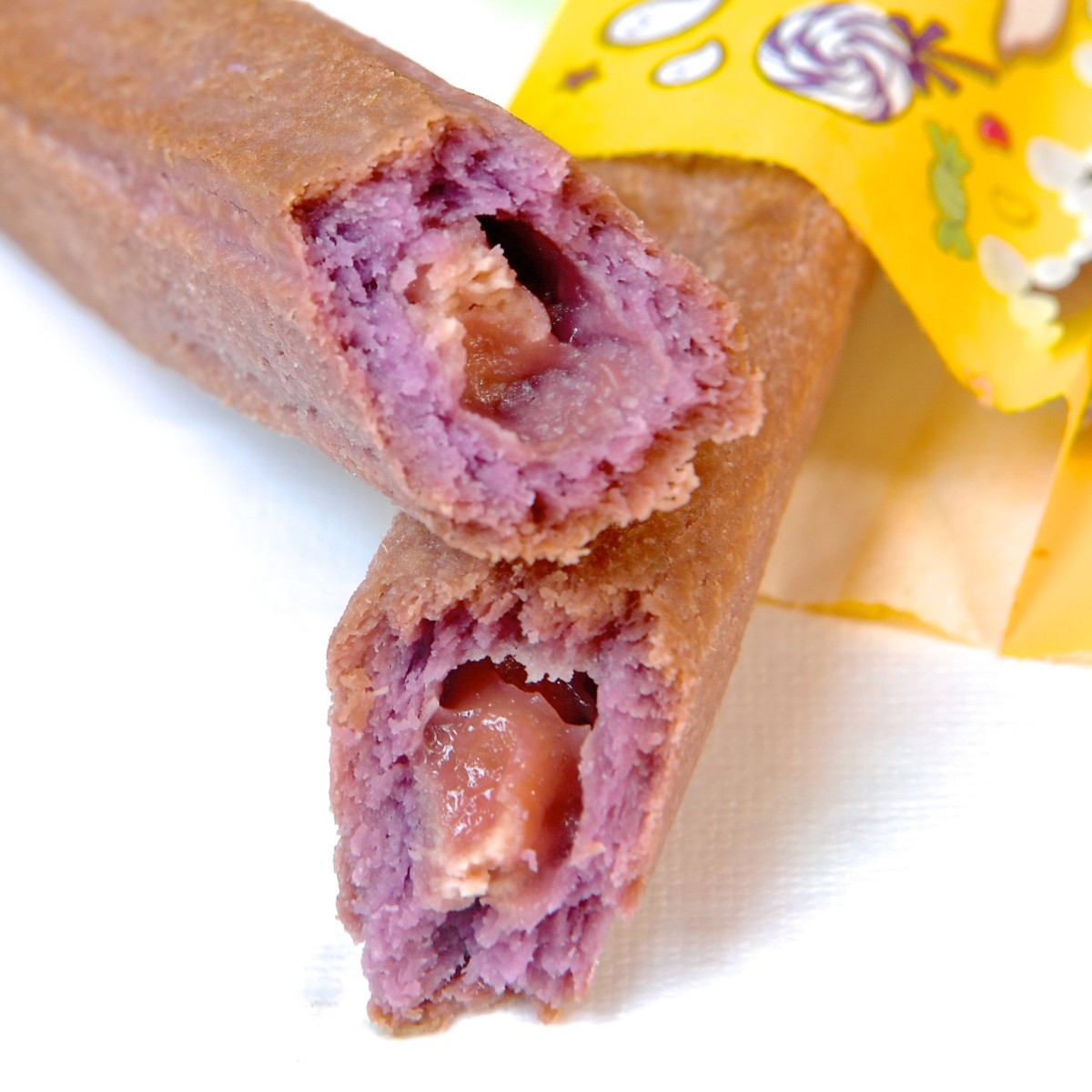 スティックタイプのパイ生地に紫イモのクリームが入った紫色のティポトルタ。