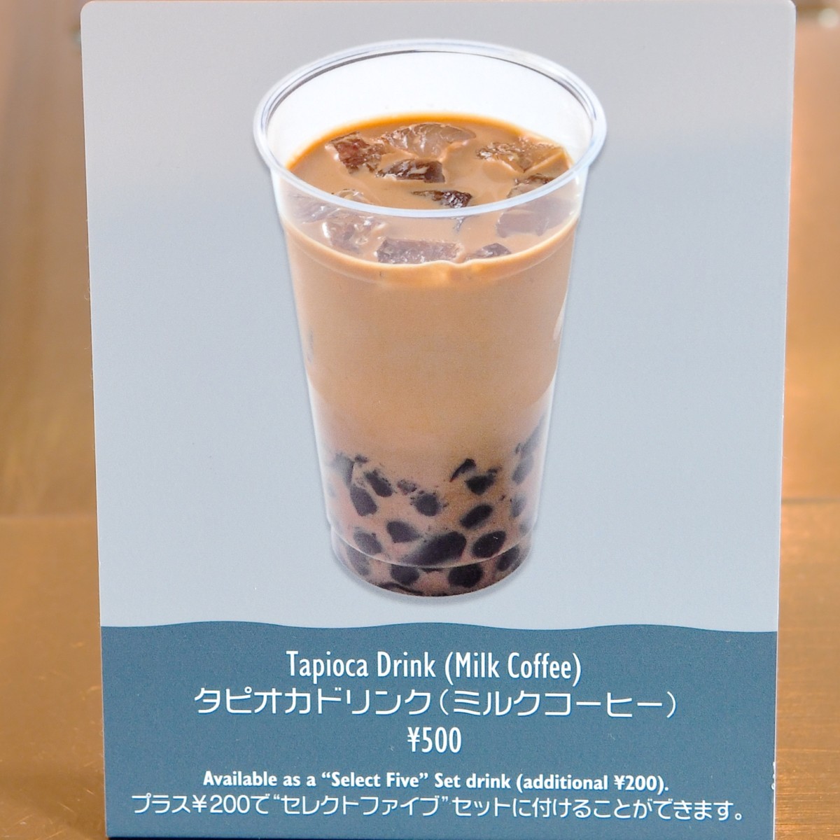 タピオカドリンク(ミルクコーヒー)を+200円でつけることができます。