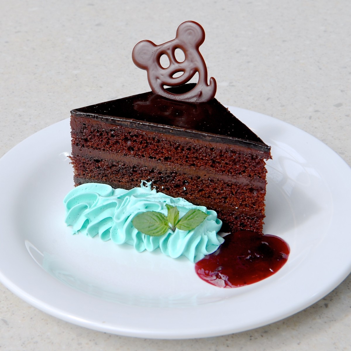 チョコレートケーキ、ミントホイップ添え