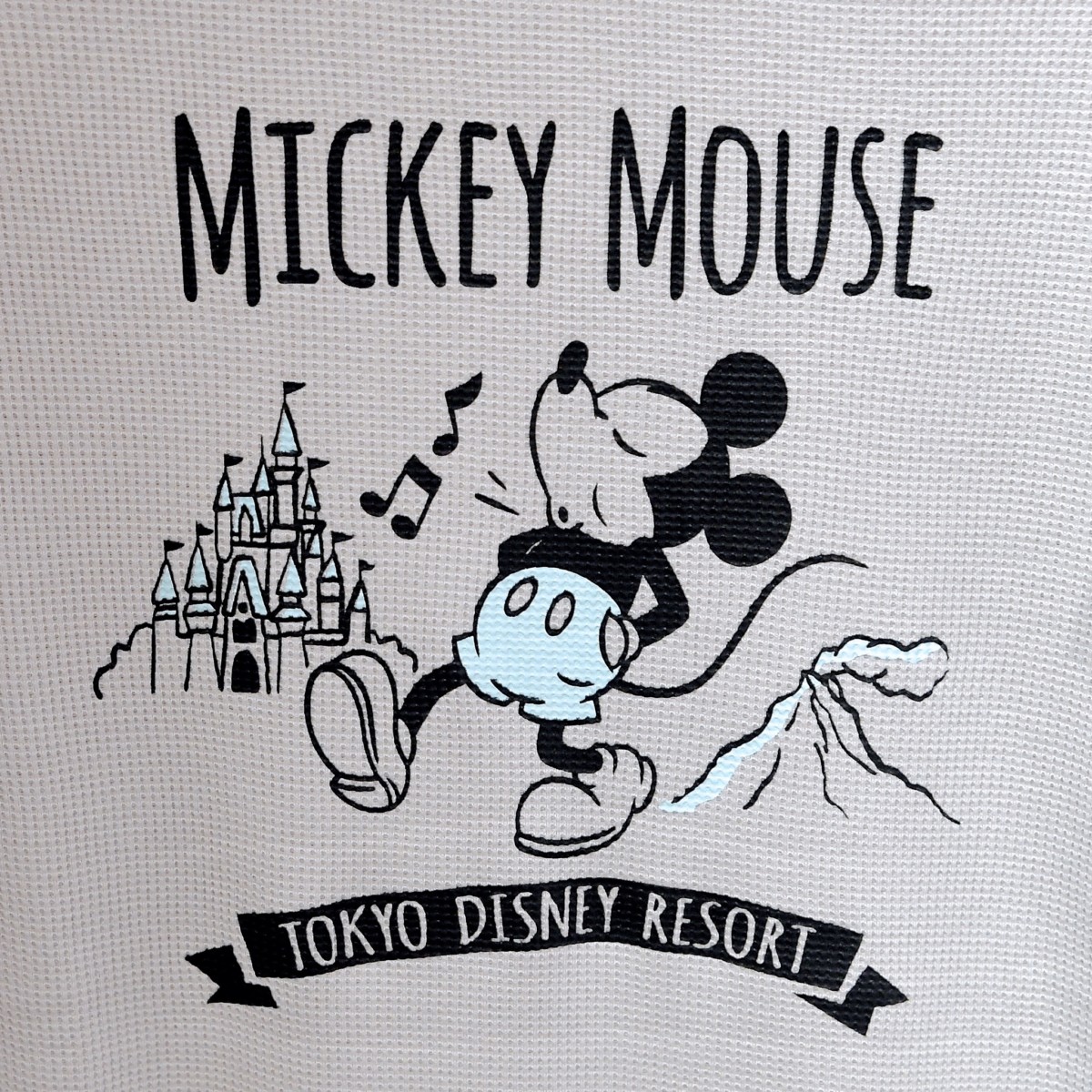 中央にMICKY MOUSEの名前とTOKYO DISNEY RESORT のロゴ、東京ディズニーランドのシンボル"シンデレラ城"と東京ディズニーシーのシンボル"プロメテウス火山"。