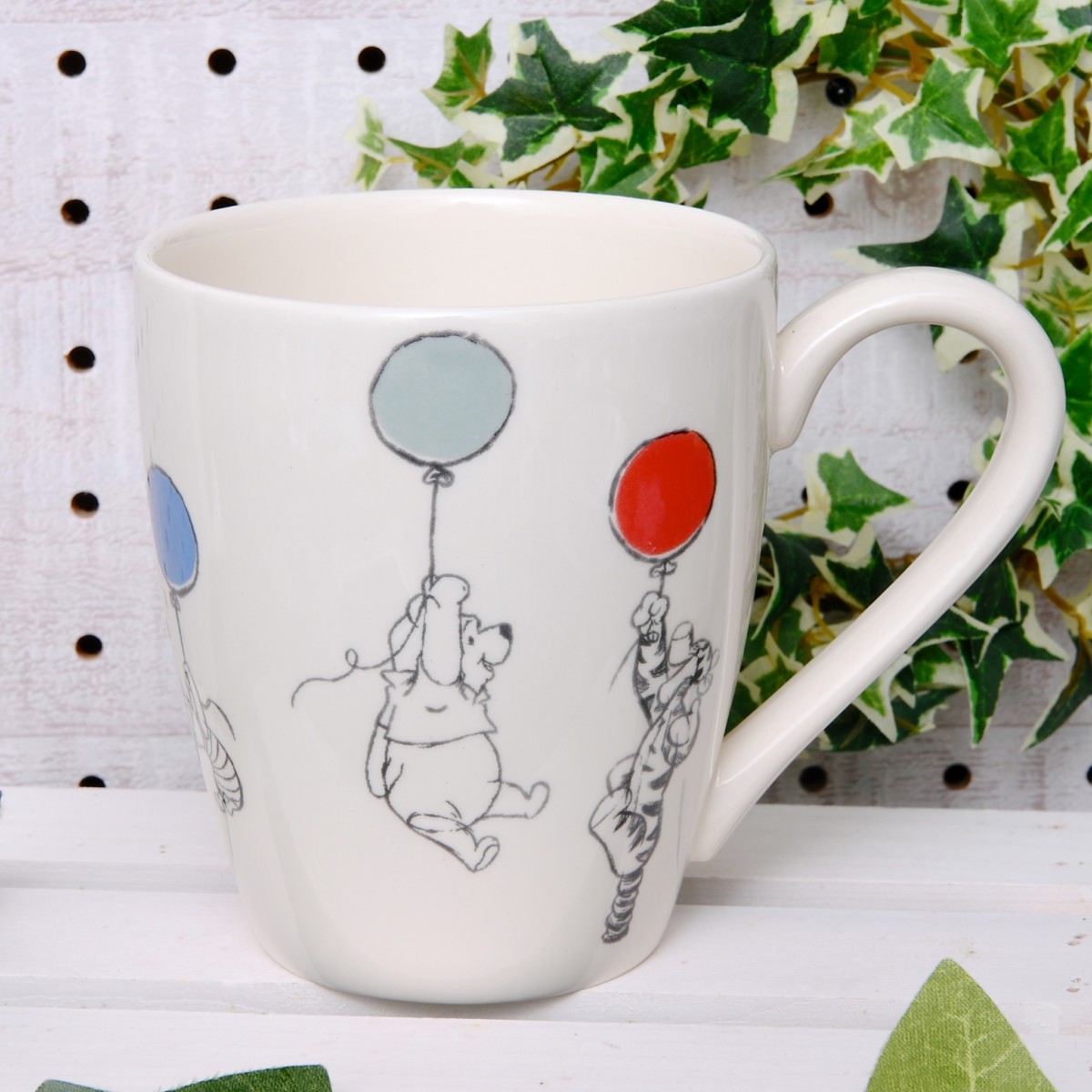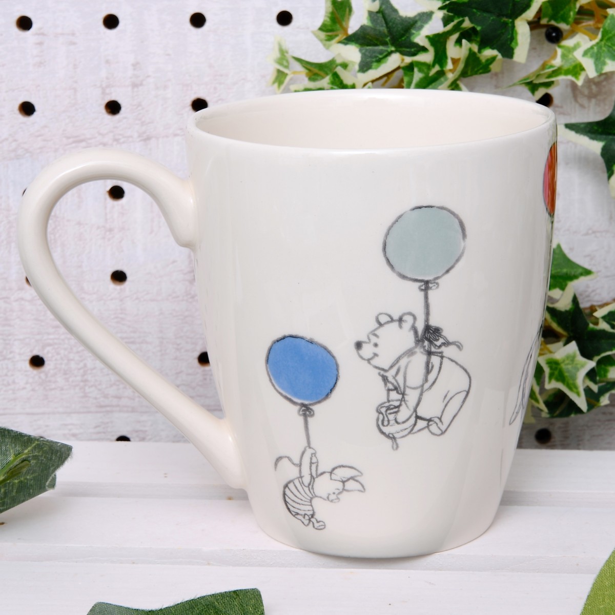 繊細なタッチで描かれたくまのプーさんたちがゆったりしたティータイムを演出してくれるマグカップ。