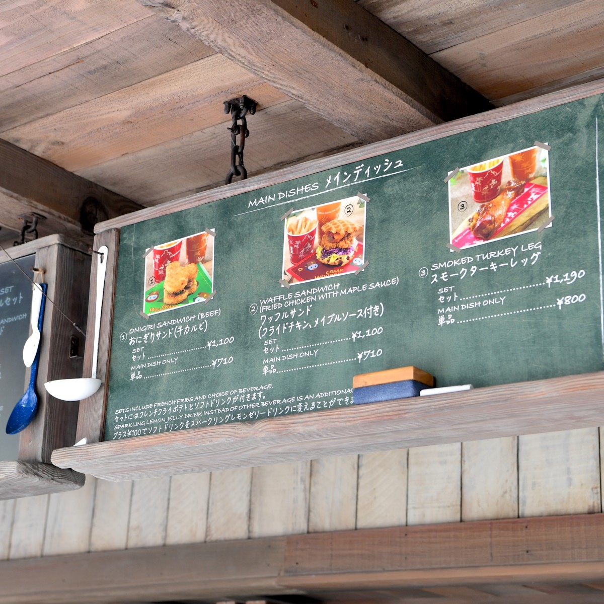 このエリアにあるレストラン「キャンプ・ウッドチャック・キッチン」では、カールス・バーグの描いたディズニーコミック『ジュニア・ウッドチャック』シリーズをテーマにしたレストランらしく、キャンプをイメージし開発したメニューなどが提供されています。