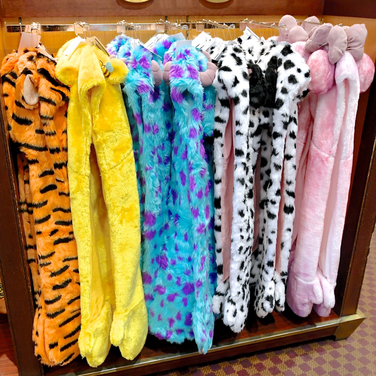新作の他、人気のティガー、サリー、101匹わんちゃんのフード付きマフラーも販売中です!