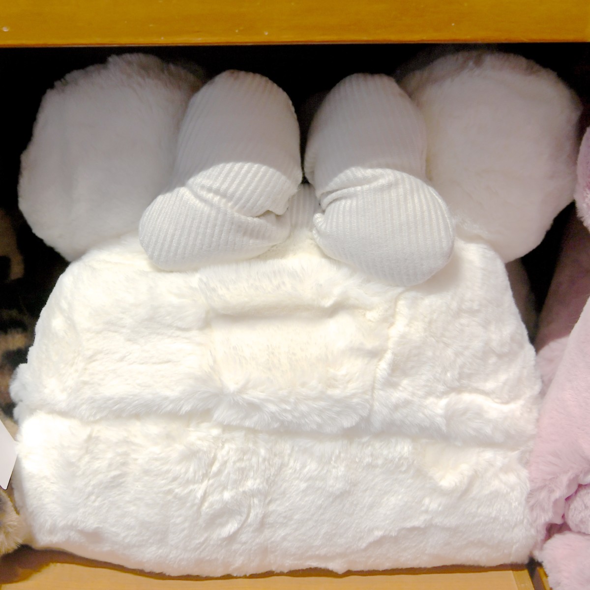 秋冬にかわいいふわもこ素材の真っ白デザイン身につけグッズ。