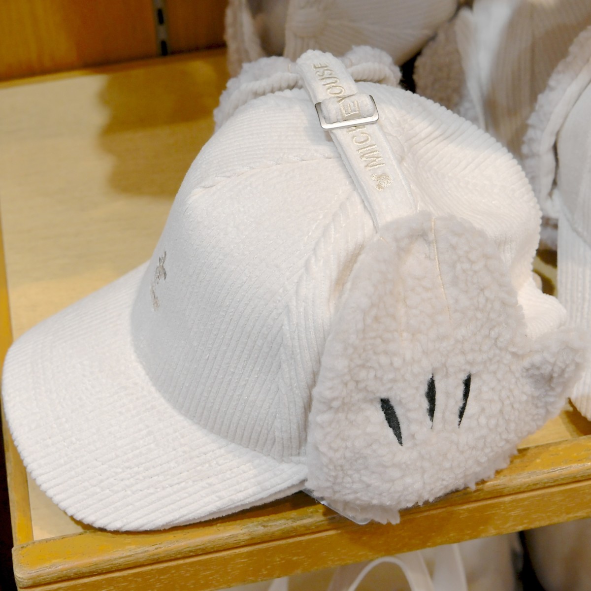 コーデュロイ素材がオシャレなミッキーデザインキャップ。