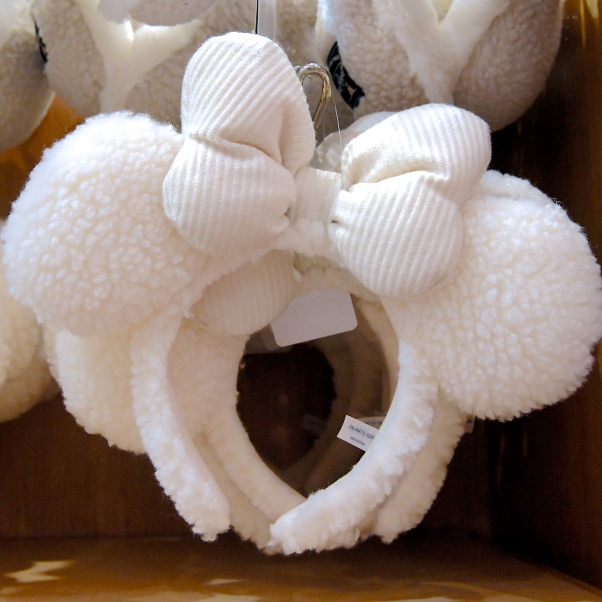 ホワイトカラー!東京ディズニーランド ミッキー・ミニーふわもこデザイン身につけグッズの紹介でした。