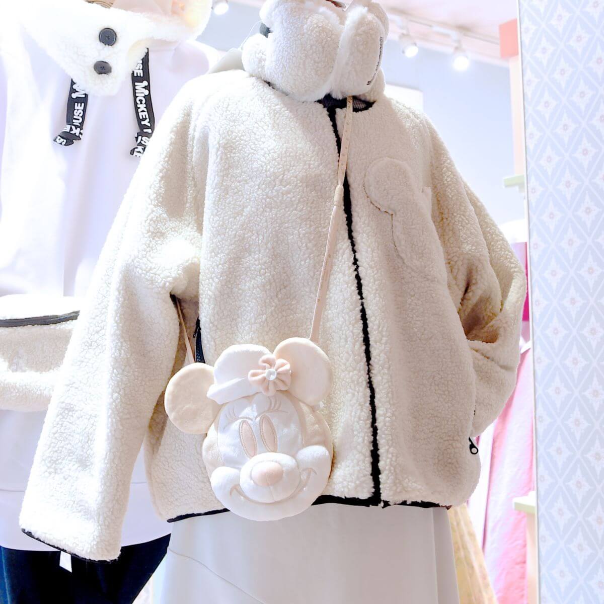 表は、真っ白なシープボアにミッキーシェイプデザイン。
