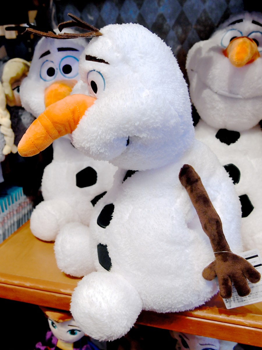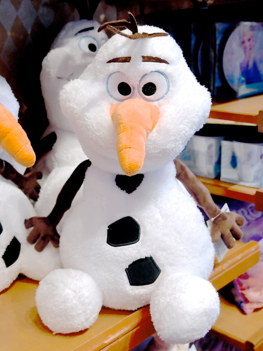 オラフの両サイドから手が入れられるあったかデザインのぬいぐるみ。