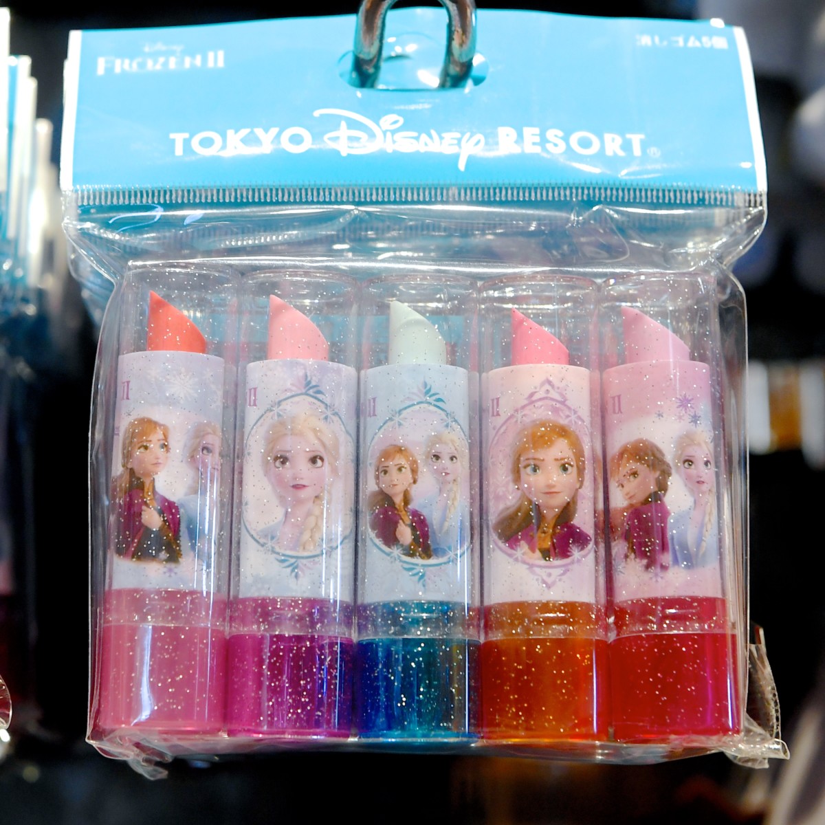 アナ、エルサデザインのリップ型消しゴム5個セット。